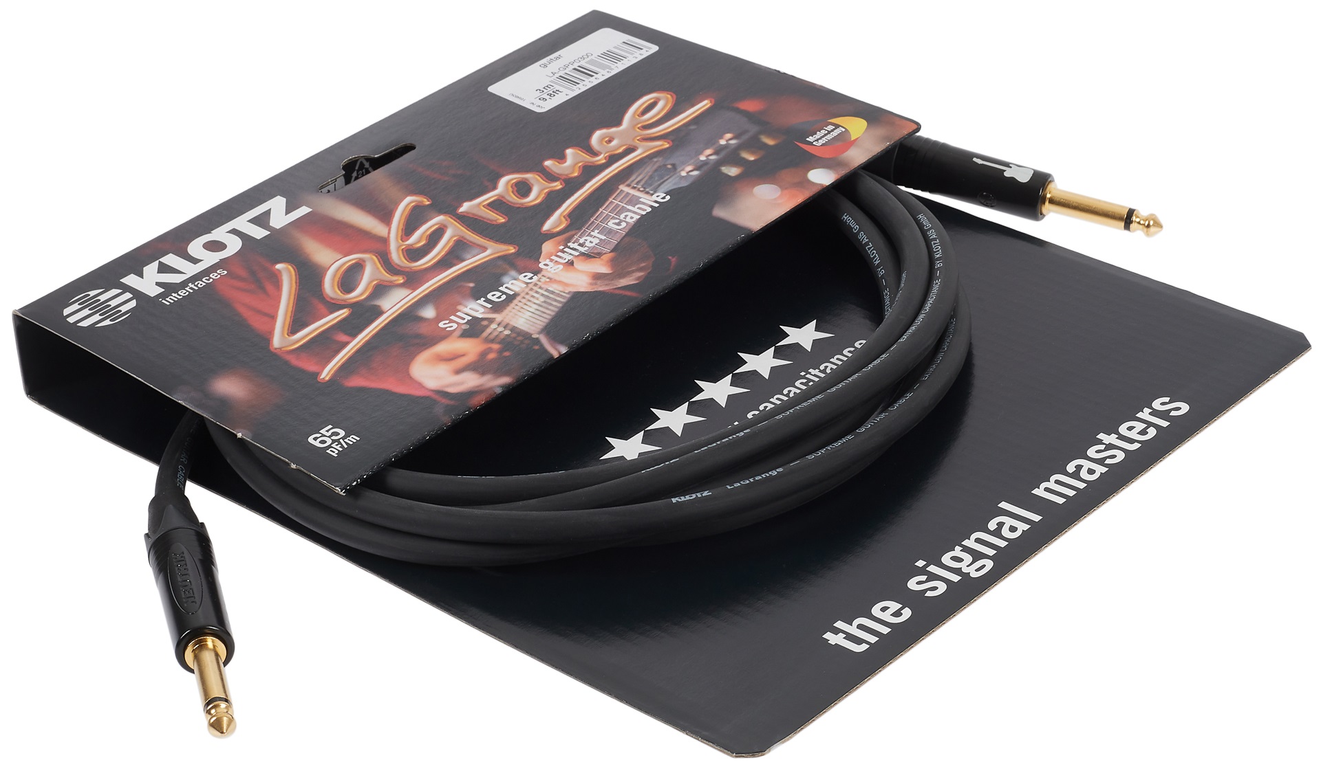 Nástrojový kábel Prístrojové káble Klotz z radu LaGrange sú na trhu od roku 1985 a počas svojej existencie sa tešia veľkej obľube. Ich veľkým lákadlom je bleskurýchla odozva, dynamický zvuk a minimálna kompresia. Mimoriadne nízka kapacita 65 pF/m zaručuje verný prenos zvuku a trojité tienenie poskytuje spoľahlivú ochranu pred šumom a hlukom. Vodič v jadre je vyrobený z kvalitnej medi. Výsledkom je čistý, frekvenčne vyvážený zvuk, ktorý ocenia aj tí najnáročnejší hudobníci.