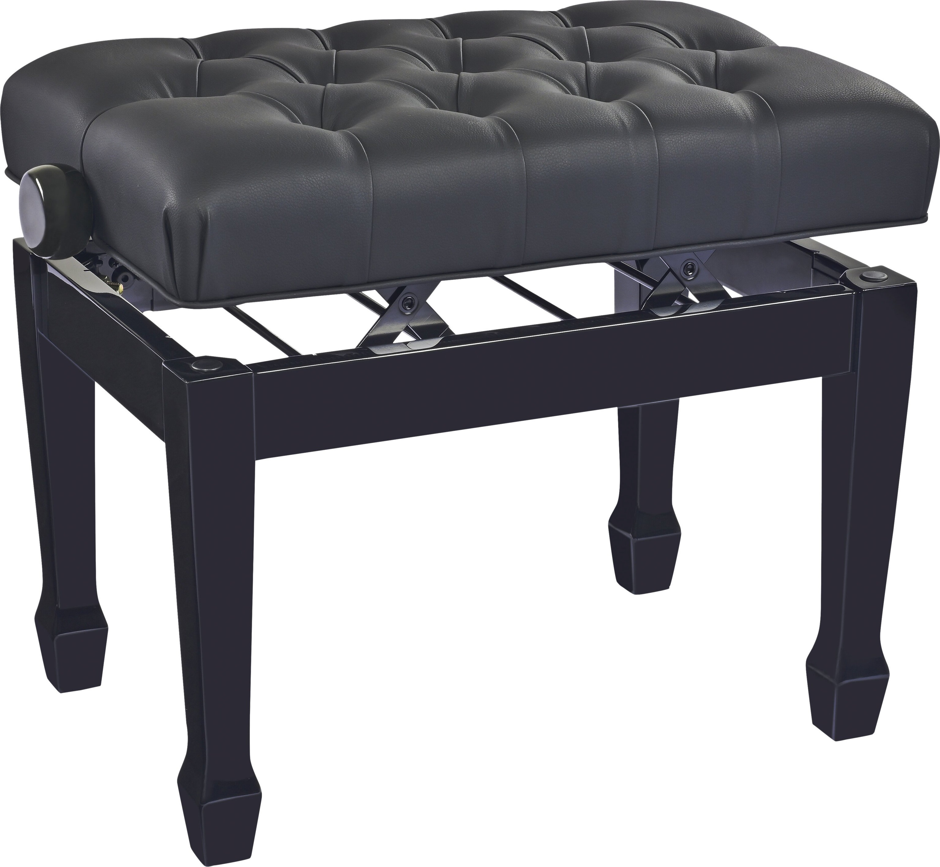 Klavírna stolička König & Meyer 13982 je vysoko kvalitná, výškovo nastaviteľná klavírna stolička, ktorá vyniká precíznym spracovaním a elegantným vzhľadom. Lesklý čierny povrch dopĺňa prešívané čierne koženkové sedadlo, ktoré dodáva stoličke luxusný a reprezentatívny charakter vhodný do domácnosti, hudobnej školy alebo koncertnej sály. Výšku je možné plynule nastavovať v rozmedzí 460 až 530 mm pomocou spoľahlivého mecha