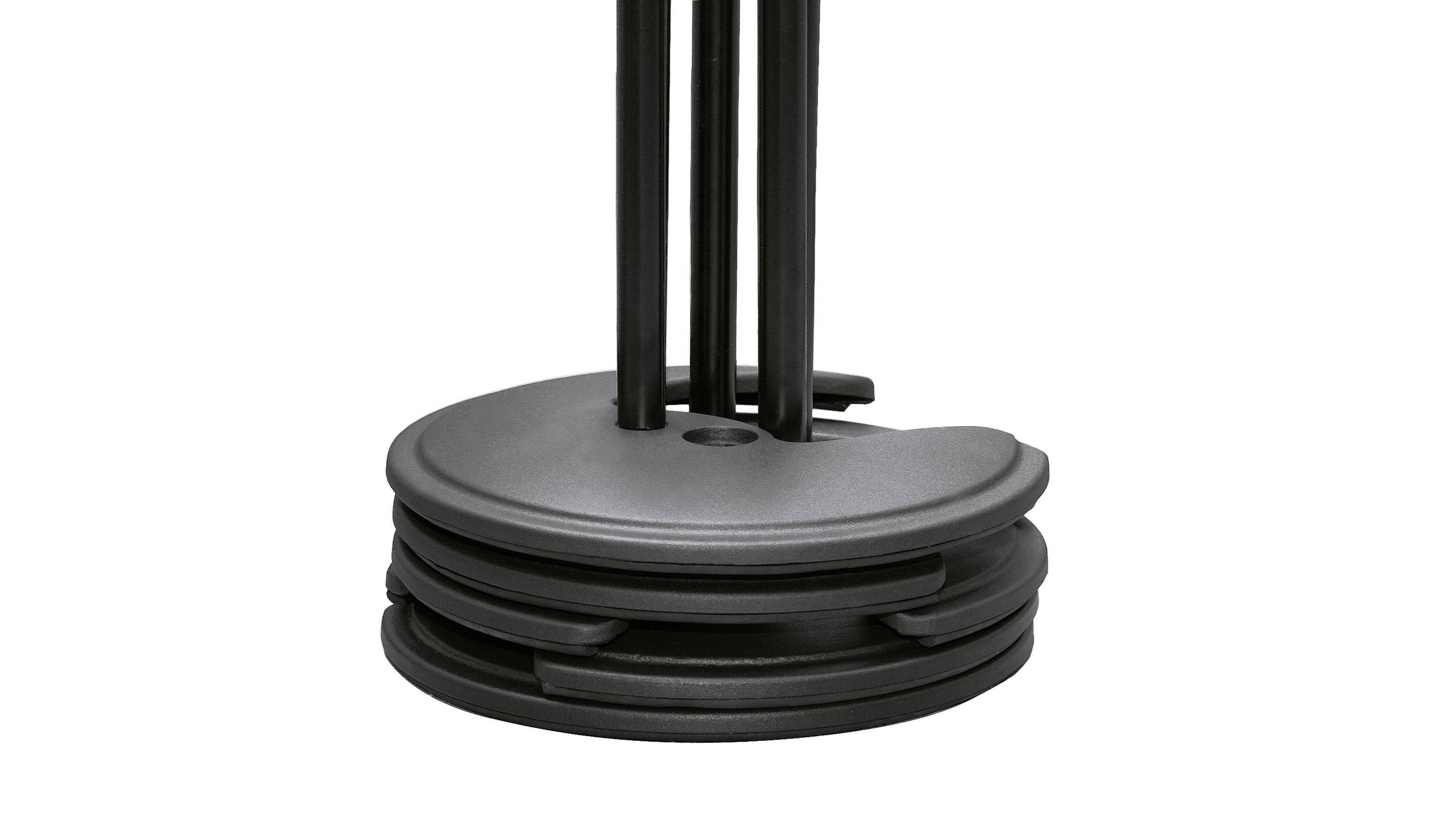 Mikrofónny stojan Oceľový mikrofónový stojan s nastaviteľnou výškou a plochou liatinovou základňou so špeciálnou konštrukciou, ktorá umožňuje stohovanie až piatich stojanov tohto typu.