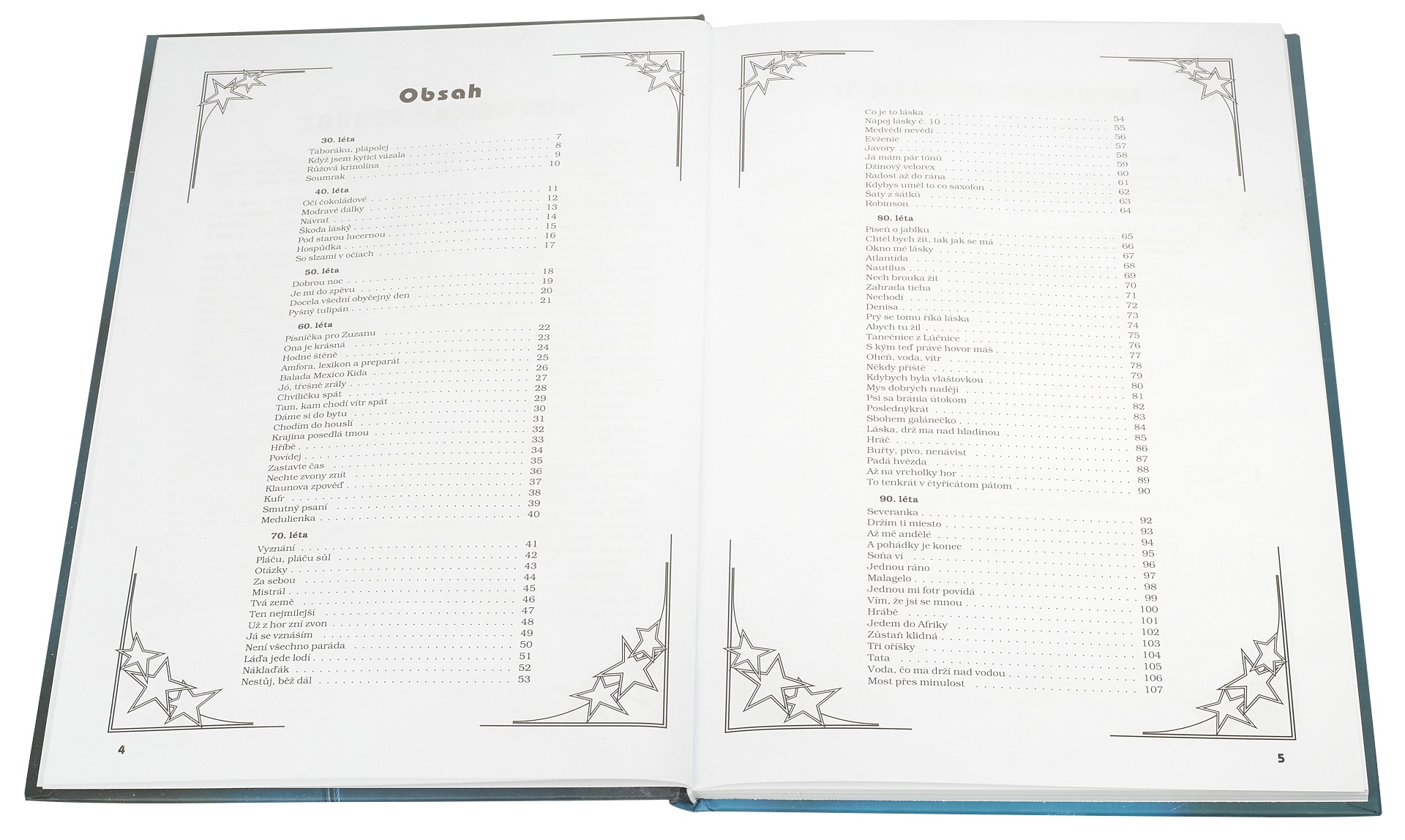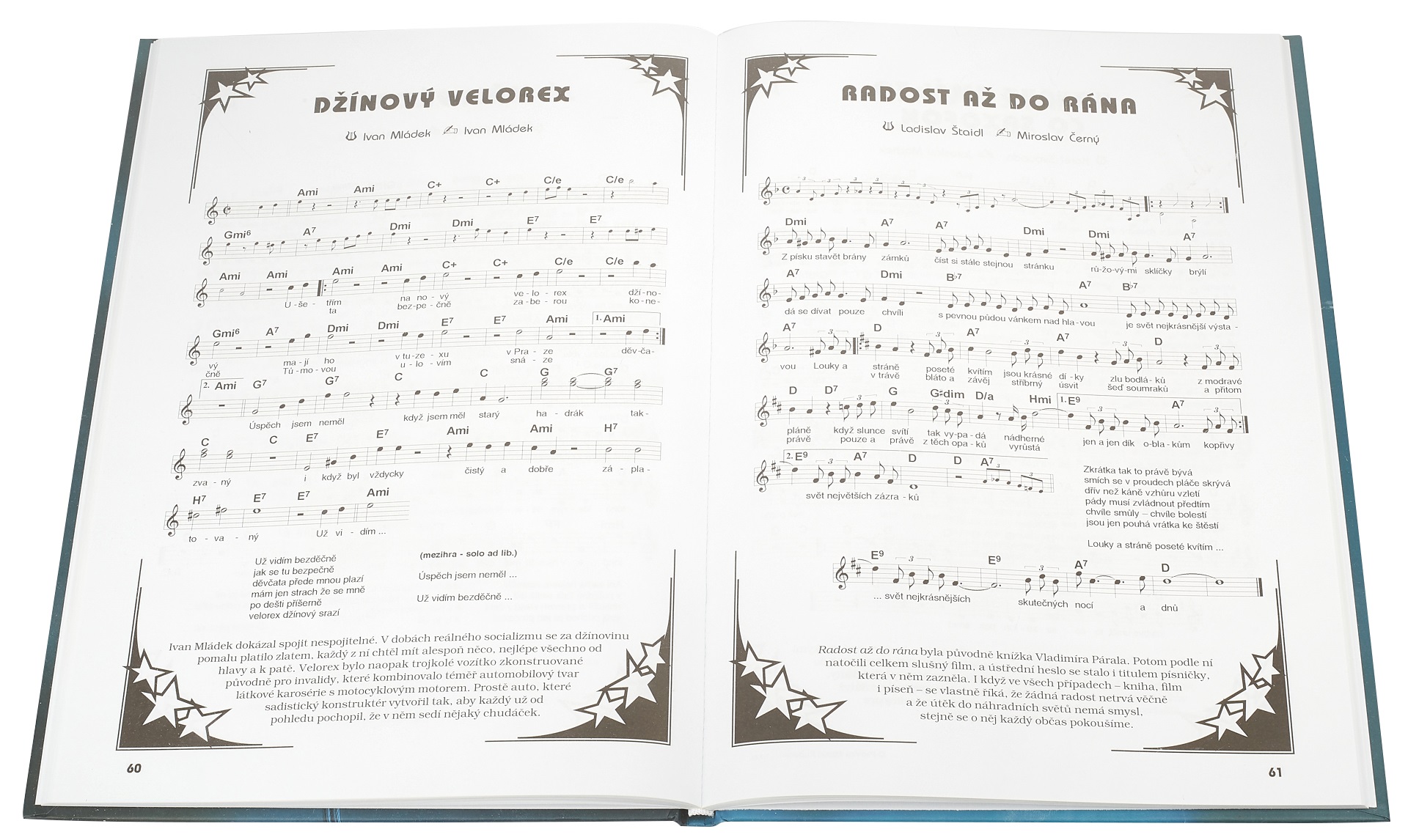 Spevník Tretia stovka najznámejších populárnych piesní od začiatku storočia po súčasnosť (Růžová krinolína, Hospůdka, Hodné štěně, Hříbě, Není všechno paráda, Sbohem galánečko, Jedem do Afriky a ďalšie) s vloženým grafom „Moderná populárna hudba a jazz v českých krajinách“