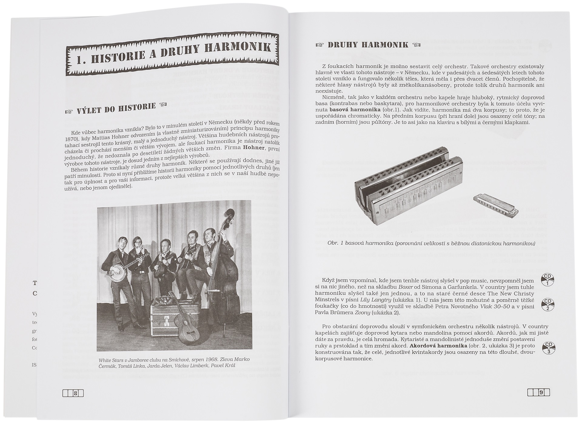Škola hry na fúkacej harmonike Učebnica hry na harmonike v country štýle. Autor je jedným z našich najlepších hráčov s dlhoročnými skúsenosťami z kapiel Greenhorns, Fešáci a ďalších. Ukážky sól a sprievodov (Jesse James, Sundej z hodin závaží, Tak já jdu dál, Orange Blossom Special, …).