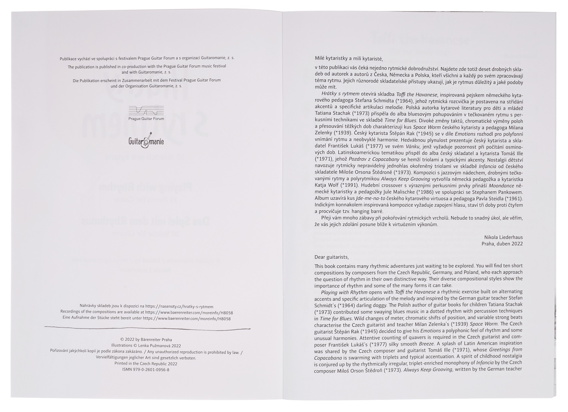 Škola hry na gitare 10 skladieb od desiatich renomovaných autorov z Česka, Nemecka a Poľska. Originálne príspevky k rozvoju rytmického cítenia mladých gitaristov. Pre stredne pokročilých hráčov. Skladby sú doplnené prstokladmi od editora. Rytmus je pre mnohých mladých klasických gitaristov výzvou. Väčšina štandardných publikácií o gitare sa mu venuje len okrajovo. Album Hrátky s rytmom sa zameriava práve na túto tému. Očarujúce skladby renomovaných učiteľov hry na gitaru, skladateľov a gitaristov rozvíjajú