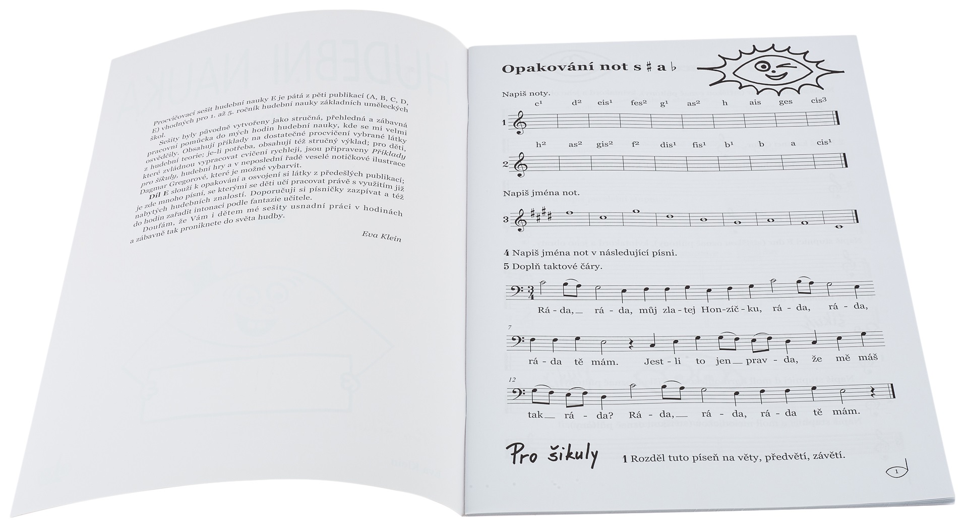 Hudobná náuka Táto pracovná kniha z hudobnej teórie, ktorá je súčasťou päťdielnej série (A až E) vhodnej pre 1. až 5. ročník hudobnej teórie na základných umeleckých školách, je stručná, prehľadná a zábavná. Obsahuje príklady z hudobnej teórie, hudobné hry a veselé hudobné ilustrácie.