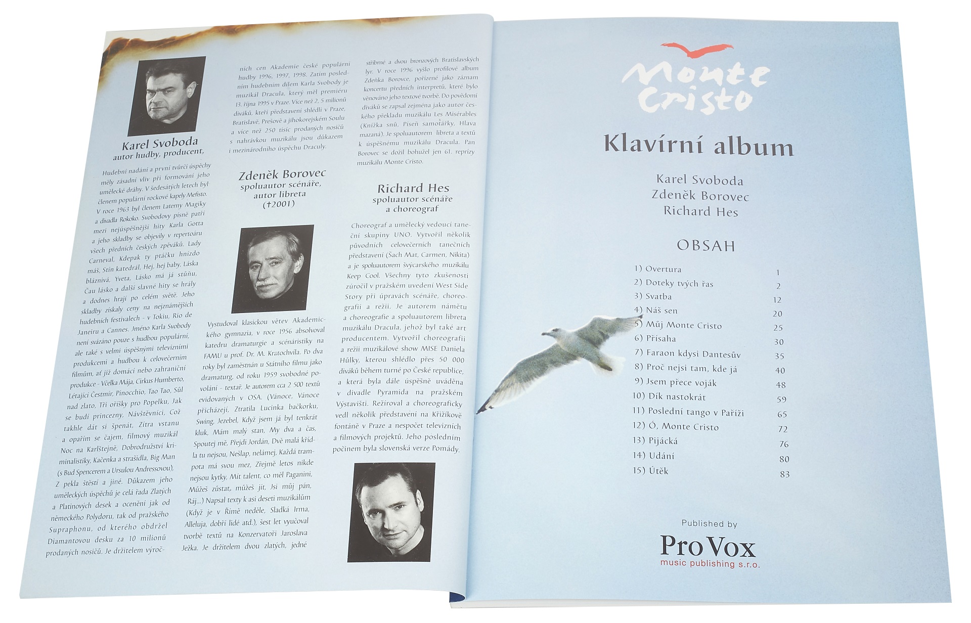 Spevník Kompletná notová zápis (pre klavír) a texty piesní zo známeho muzikálu Karla Svobodu.