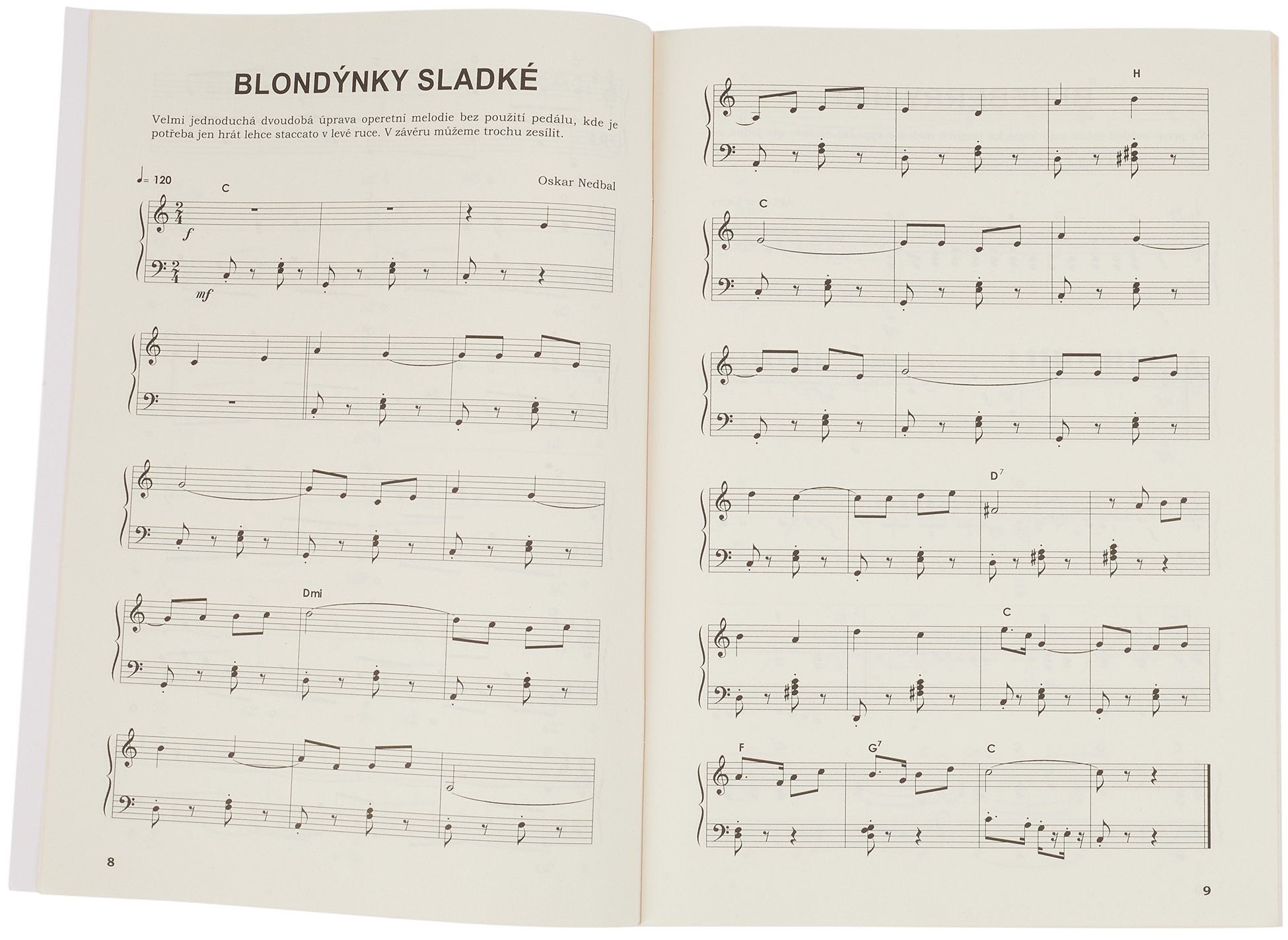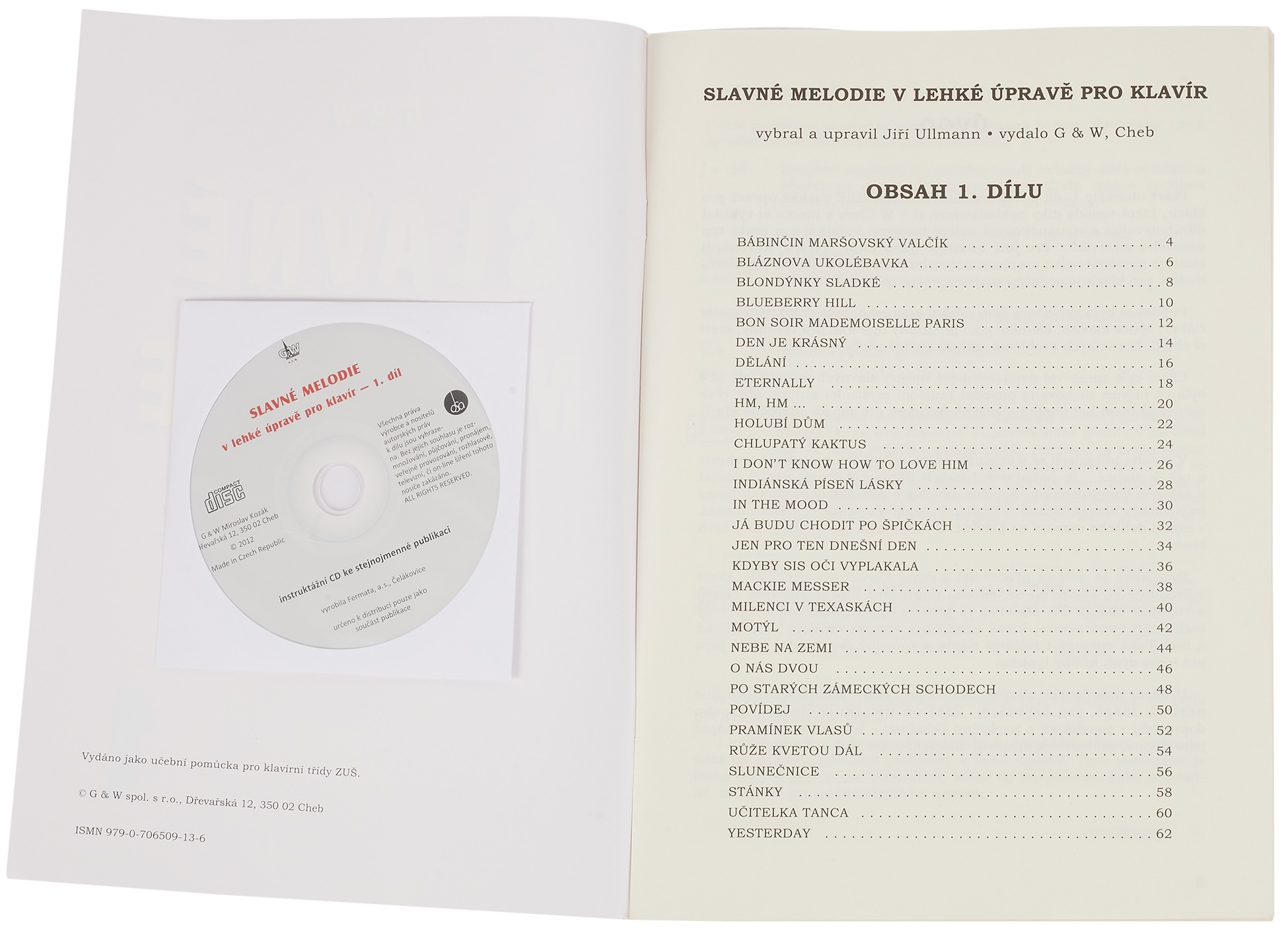 Noty pre klavír Hrajte známe hity a obľúbené piesne z rôznych hudobných žánrov v jednoduchých a ľahkých aranžmánoch určených pre klavír. Balíček obsahuje aj CD so všetkými skladbami v danom aranžmáne, aby ste si mohli urobiť presnú predstavu o tom, ako by mala kompozícia znieť. Zoznam skladieb: Bábinčin maršovský valčík (Bábinčin pochodový valčík) Bláznova ukolébavka (Uspávanka blázna) Blondýnky sladké (Sladké blondínky) Blueberry Hill Bon soir mademoiselle Paris Den je krásný (Deň je krásny) Dělání (Robeni