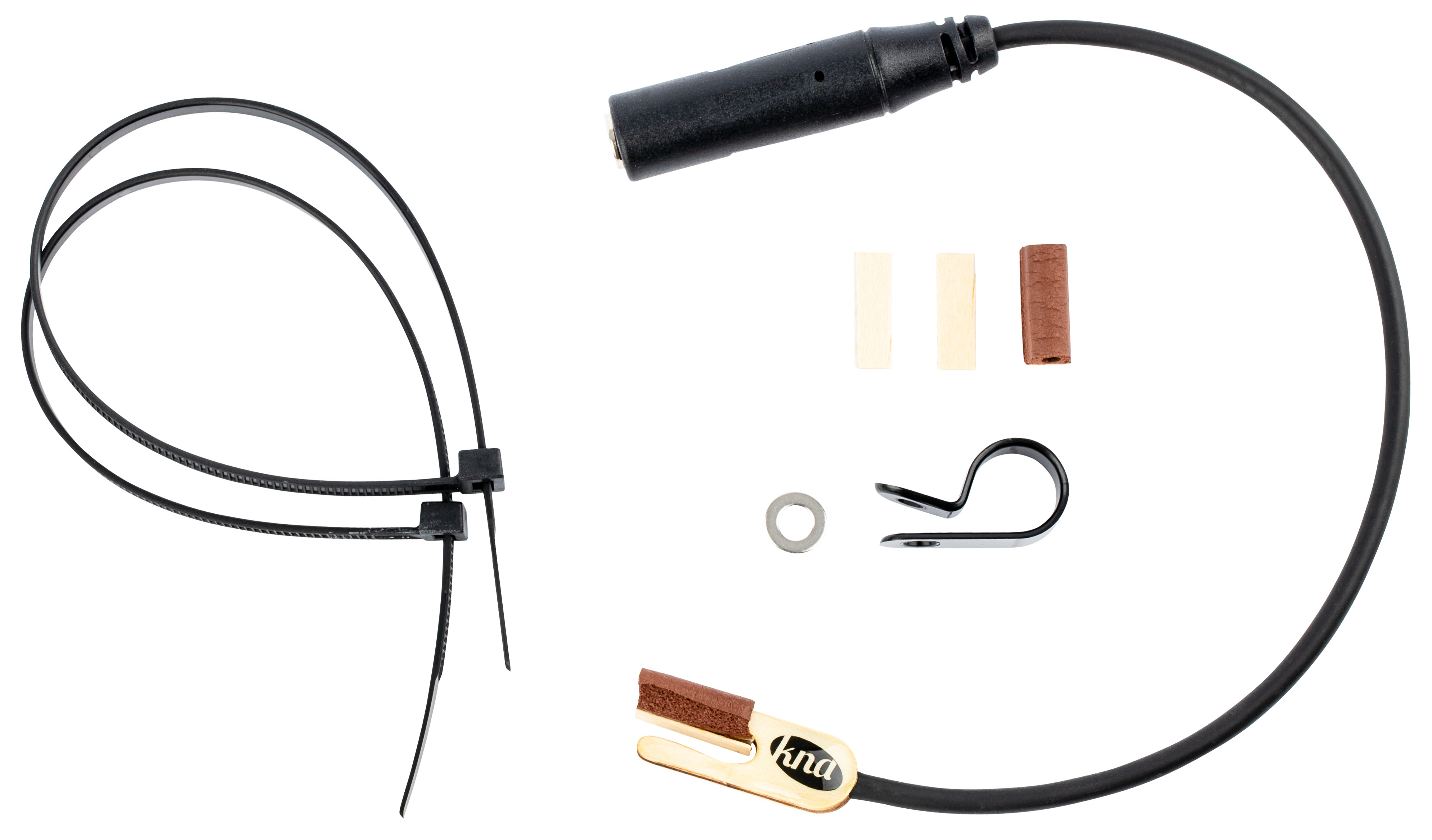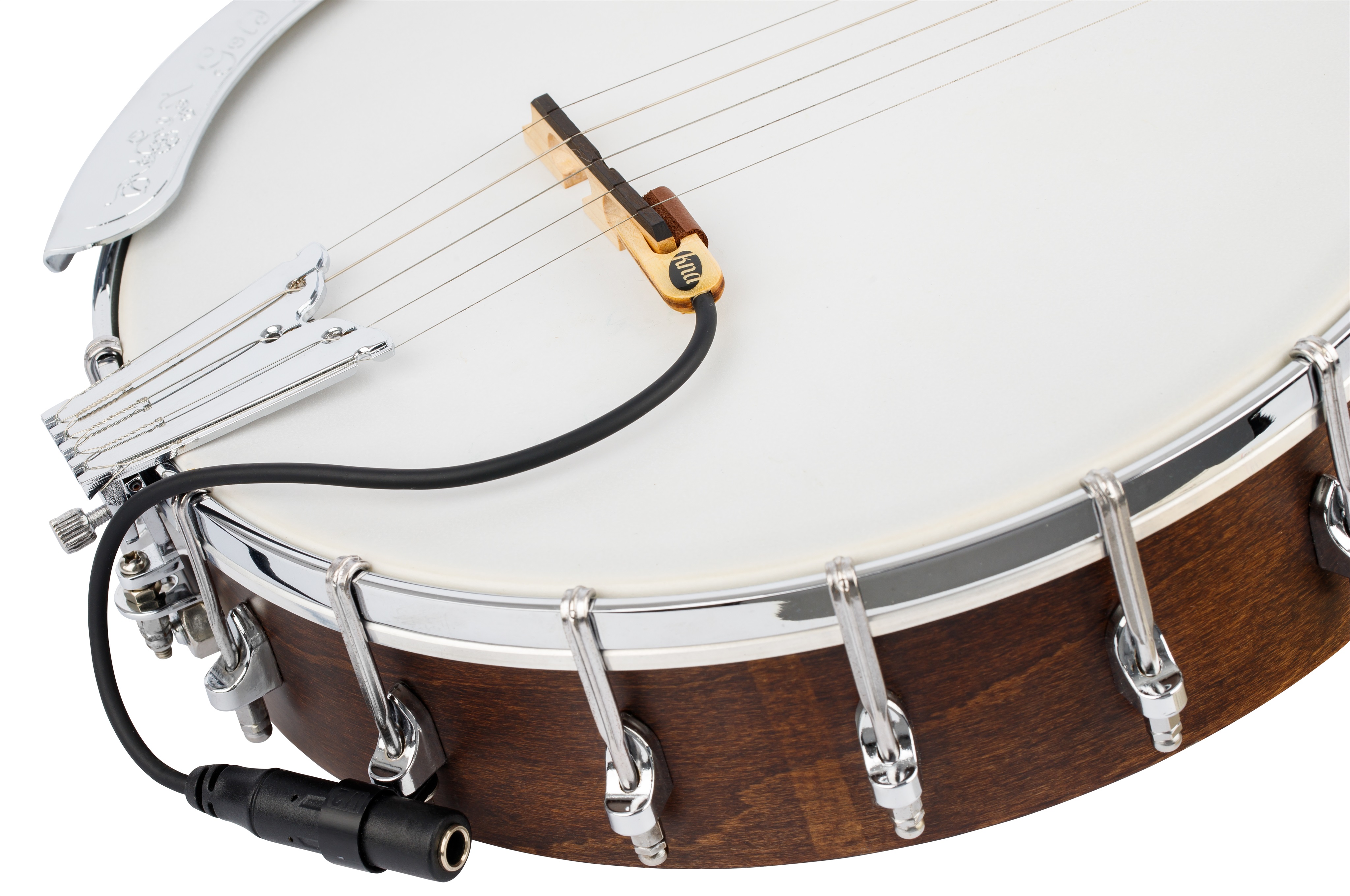 Snímač pre bendžo Tento piezoelektrický snímač pre banjo je navrhnutý tak, aby poskytoval veľmi prirodzený zvuk a zachoval špecifické akustické vlastnosti nástroja. Celý systém je veľmi kompaktný a jednoducho sa inštaluje, pričom nevyžaduje žiadne zásahy do nástroja. Snímač sa jednoducho namontuje na hmatník a výstupný konektor sa potom môže pripevniť napríklad na bočnú stranu nástroja pomocou priložených pásikov na suchý zips. Samotný piezoelektrický snímač je umiestnený v ľahkom drevenom puzdre, ktoré mu