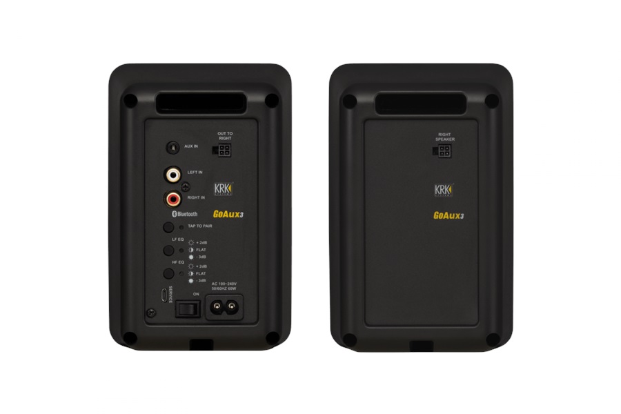 Aktívne štúdiové monitory KRK GoAux 3 sú dvojpásmové aktívne štúdiové monitory s 3-palcovým wooferom (22 W) a 1-palcovým tweeterom (8 W), integrovaným prijímačom Bluetooth 5.0, ovládaním hlasitosti a výstupom na slúchadlá na prednej strane a linkovými vstupmi RCA L/R a 3,5 mm jack TRS. Súčasťou balenia je odolné plastové puzdro na prenášanie, príslušenstvo a stojany na monitor s nastaviteľnou polohou a sklonom monitora. Frekvenčná odozva: (-3 dB SPL) 65 Hz – 20 kHz, (-10 dB SPL) 60 Hz – 22 kHz