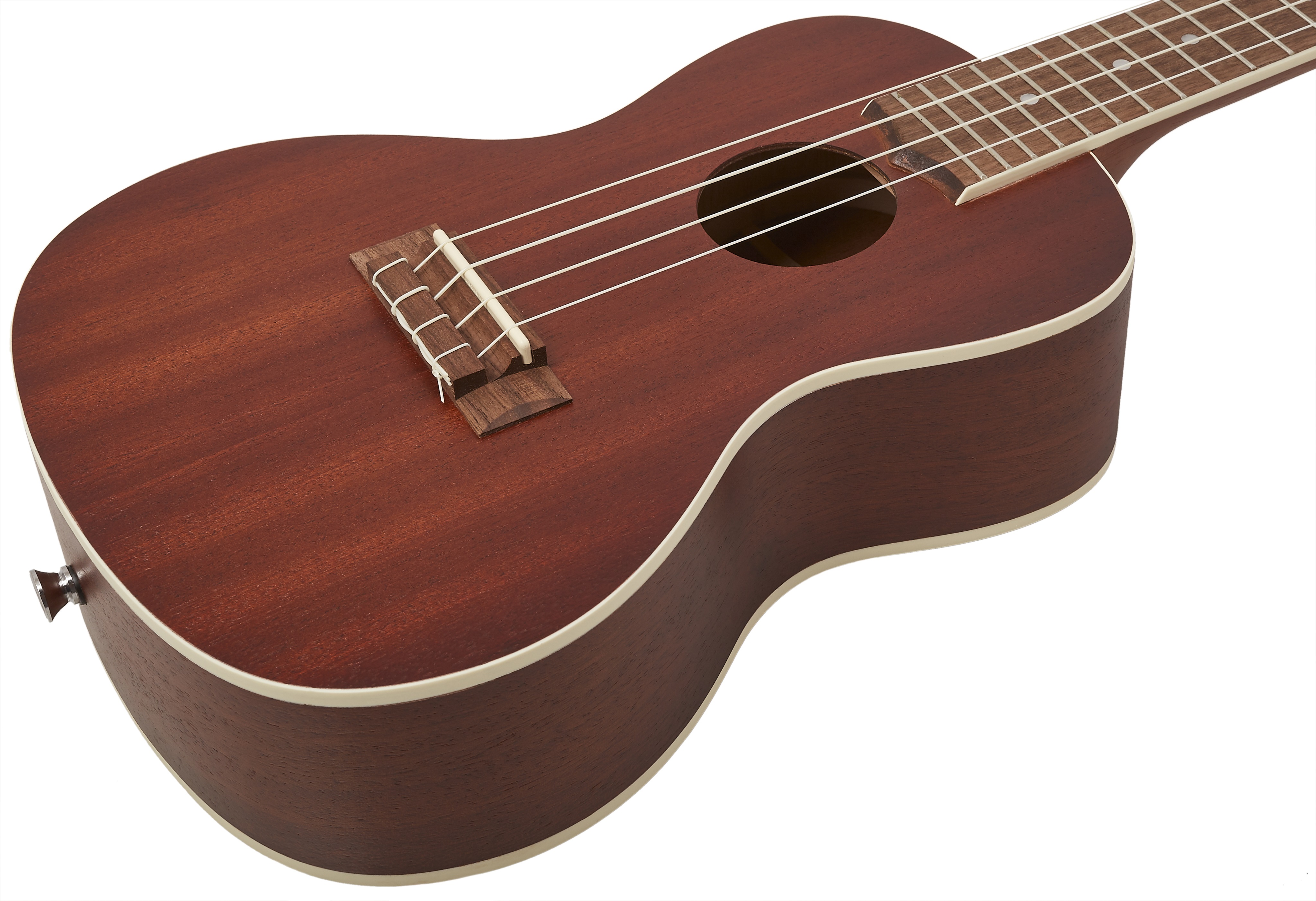 Akustické ukulele Telo tohto koncertného ukulele je vyrobené z prelamovaného mahagónu, ktorý nástroju dodáva tradičný vzhľad a teplý zvuk. Orechový hmatník je osadený osemnástimi pražcami s polohovými značkami pre ľahšiu orientáciu. Širší krk nástroja a nultý pražec ponúkajú pohodlný pocit a pohyb hmatníka, zatiaľ čo sedlo NuBone XB a nultý pražec poskytujú dobrý sustain strún. Stabilitu ladenia zaručujú kvalitné otvorené pochrómované mechaniky. Vizuálny dojem podčiarkuje lemovanie (telo a hmatník) z materi