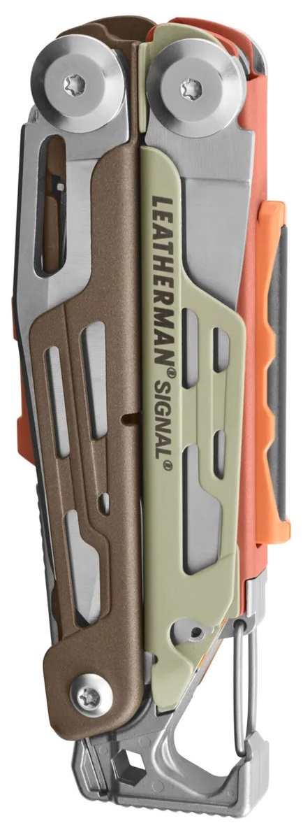 Náradie Outdoorový multitool Signal od renomovanej spoločnosti Leatherman je ideálnym nástrojom pre všetkých outdoorových nadšencov, ktorí hľadajú kompaktný a spoľahlivý nástroj do každej situácie. Tento model v sebe spája celkovo 19 nástrojov, medzi ktorými nájdete prvotriedny kombinovaný nôž, kvalitný nôž s ostrou kombinovanou čepeľou, pílku, kladivo, otvárač na konzervy a fľaše, nástavec na výmenné bity, bezpečnostnú píšťalku, kremeň alebo dokonca ocieľku s diamantovou v
