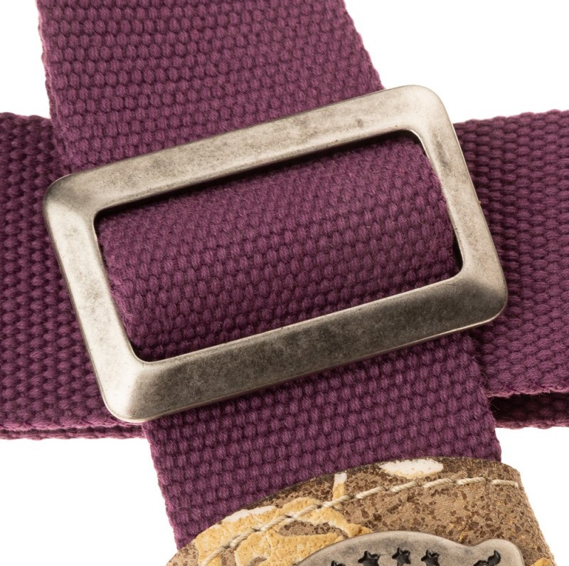 Gitarový popruh Talianska značka Magrabó je známa svojimi ručne vyrábanými popruhmi, ktoré v sebe spájajú precízne remeselné spracovanie, elegantný dizajn a dôraz na pohodlie. Tento model je vyrobený z vysokokvalitnej bavlny a zakončený koženými koncami na zapínanie. Je vyrobený z najlepších materiálov, ktoré mu dodávajú odolnosť a dlhú životnosť. Pomocou kovovej pracky s mosadznou povrchovou úpravou možno remienok nastaviť v rozsahu od 95 do 160 cm