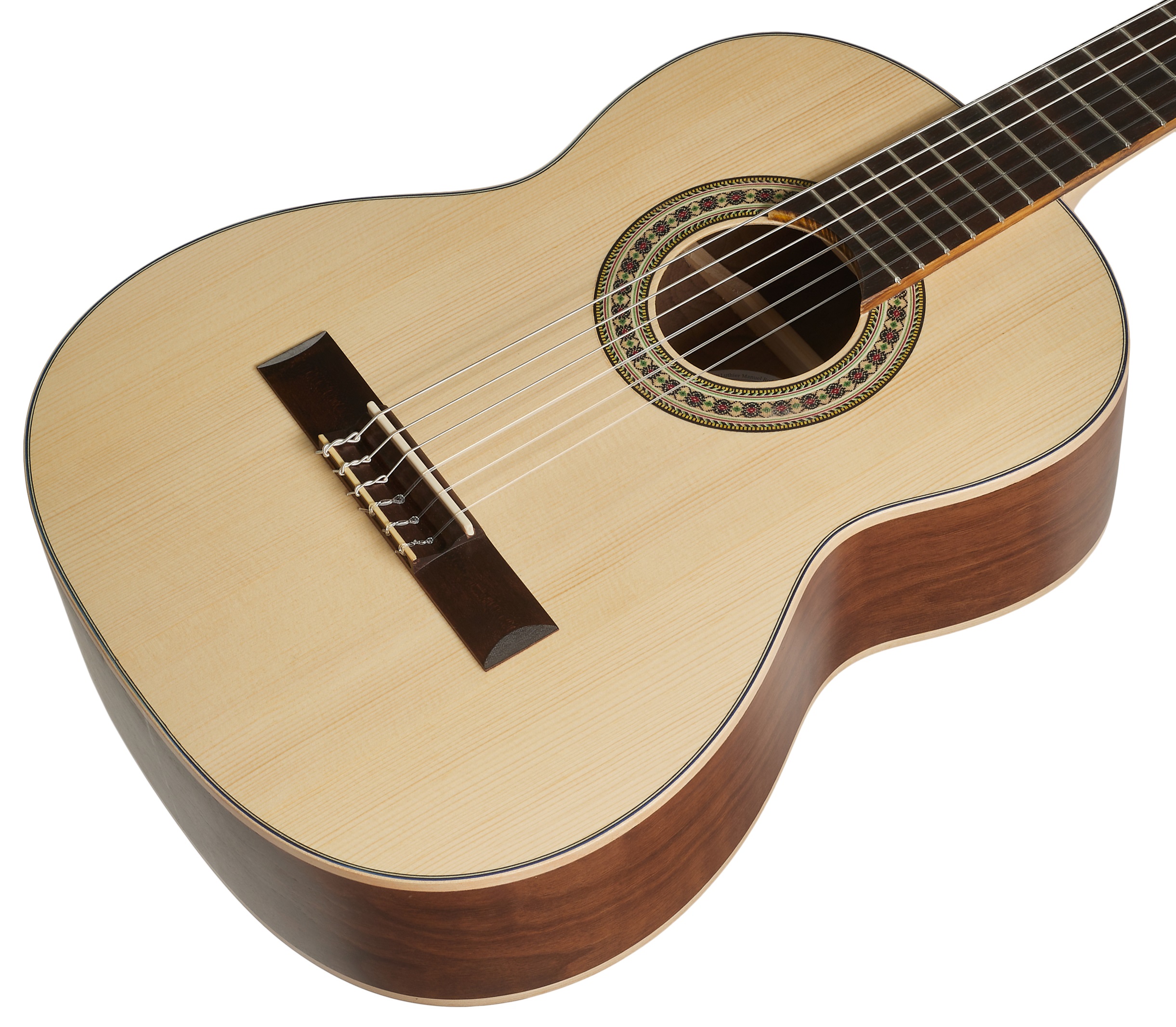 Detská klasická gitara Klasické gitary španielskej značky Manuel Rodriguez zo série ECOLOGÍA sa vracajú k tradícii používania lokálne dostupných materiálov. Na povrchovú úpravu laku sa používajú len laky na báze vody. ECOLOGÍA Series E-53 1/2 size je detská klasická gitara vo veľkosti 1/2. Predná doska nástroja je vyrobená z masívneho smrekového dreva, zadná doska a luby sú z laminovaného orechového dreva. Gitara je ďalej vybavená javorovým krkom, akáciovým hmatníkom a kobylkou, nultým pražcom a hmatníkovou