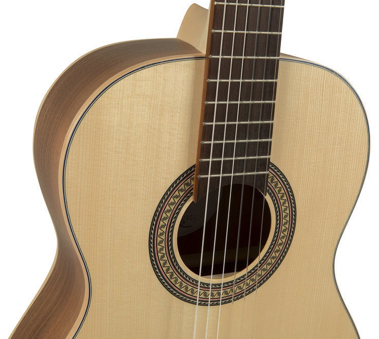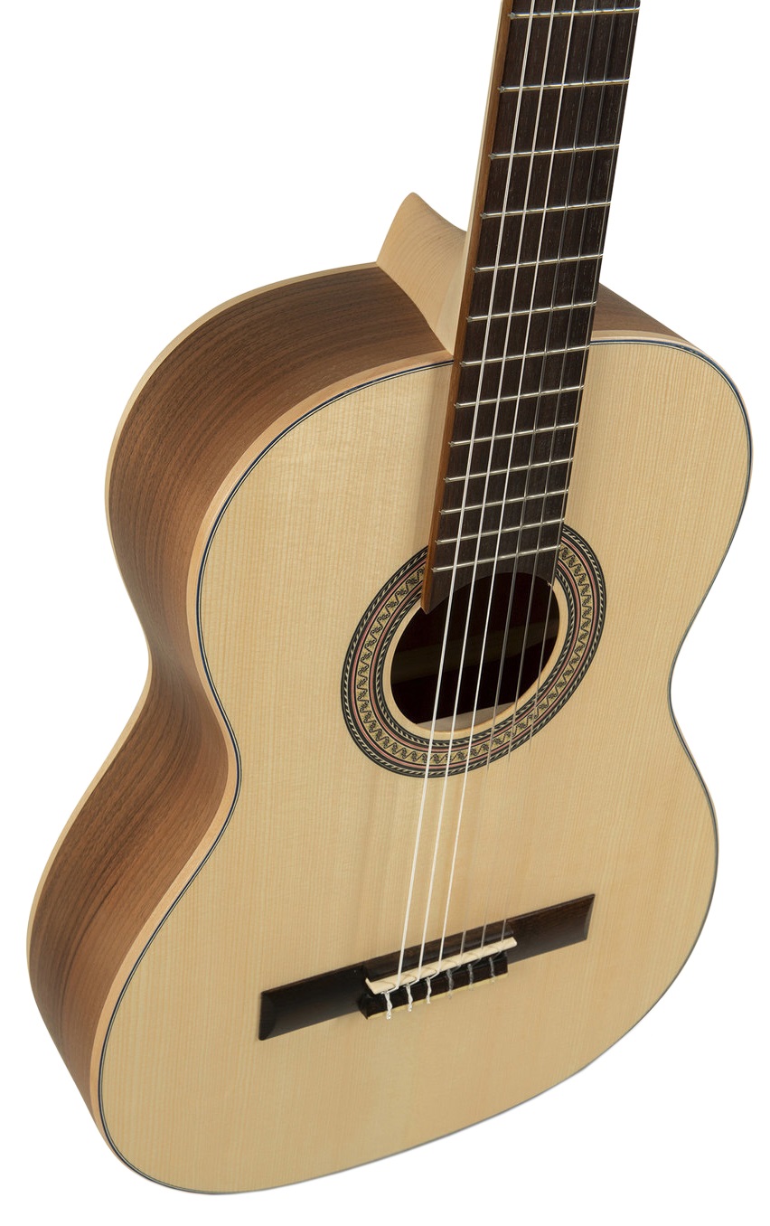 Klasická gitara Klasické gitary španielskej značky Manuel Rodriguez zo série ECOLOGÍA sa vracajú k tradícii používania lokálne dostupných materiálov. Na povrchovú úpravu laku sa používajú len laky na báze vody. ECOLOGÍA Series E-62 7/8 size „Senorita“ je klasická gitara vo veľkosti 7/8. Predná doska nástroja je vyrobená z masívneho smrekového dreva, zadná doska a luby sú z laminovaného orechového dreva. Gitara je ďalej vybavená javorovým krkom, akáciovým hmatníkom a kobylkou, nultým pražcom a hmatníkovou in