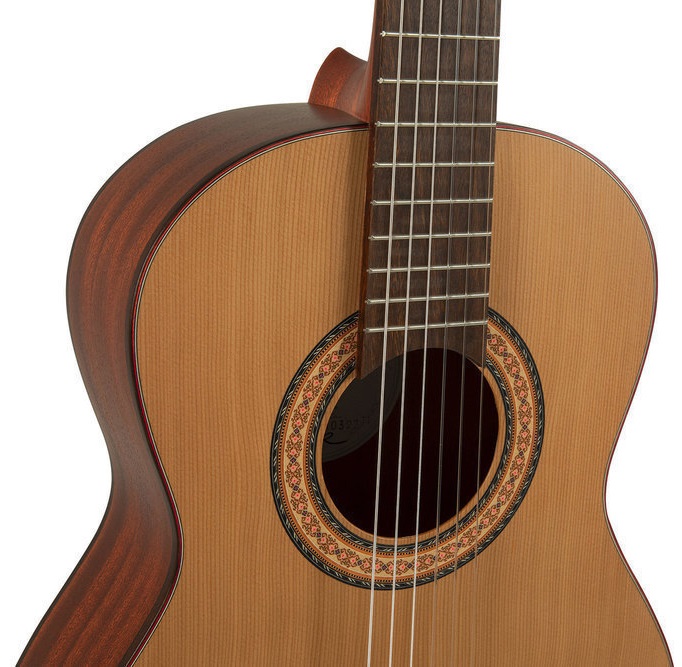 Detská klasická gitara Klasické gitary španielskej značky Manuel Rodriguez zo série TRADICÍON prinášajú v súlade s názvom série kombináciu tradičného dizajnu a časom overených drevín. Séria TRADICÍON T-57 3/4 size je detská klasická gitara vo veľkosti 3/4. Predná strana nástroja je vyrobená z masívneho červeného cédra, zatiaľ čo zadná strana a luby sú z laminovaného mahagónu. Gitara je ďalej vybavená mahagónovým krkom, ovangkolovým hmatníkom a kobylkou, nultým pražcom a hmatníkovou intarziou zo syntetického