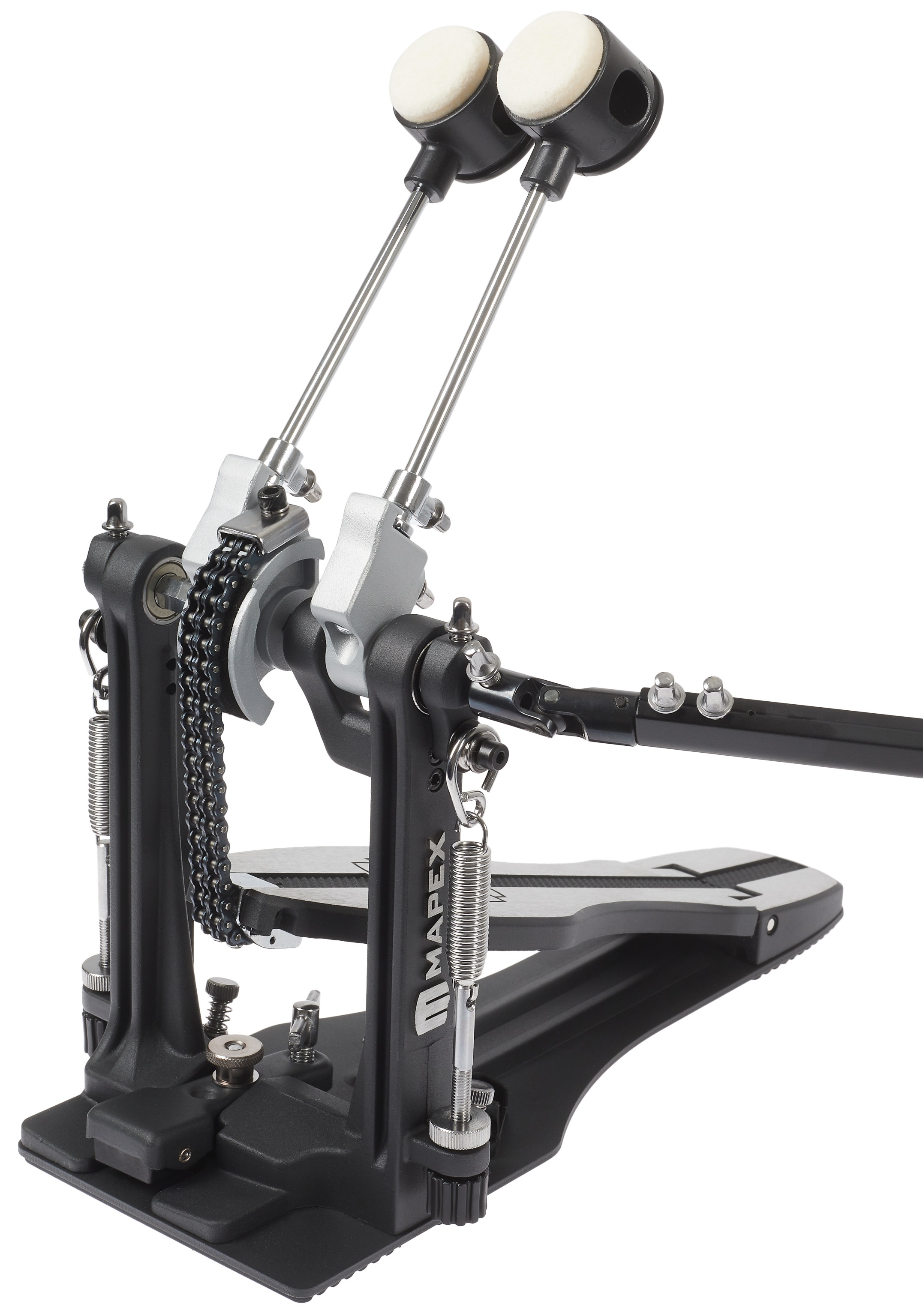 Double pedál k basovému bubnu MAPEX ARMORY DOUBLE BASS DRUM PEDAL Tento double pedál k basovému bubnu bol predstavený spolu s radom bicích Mars v roku 2014. Ide o pedál so štandardným dvojitým reťazovým prevodom, ktorý vďaka oceľovej konštrukcii ponúka skvelú stabilitu a ideálny pocit z hrania. Tento model se vyznačuje nižšou hmotnosťou, vďaka čomu je skvelou voľbou aj pre začínajúceho bubeníka. Na prispôsobenie vašim potrebám je možné upraviť tvrdosť použitej pružiny. Pedál ako taký je predĺžený kvôli lepš