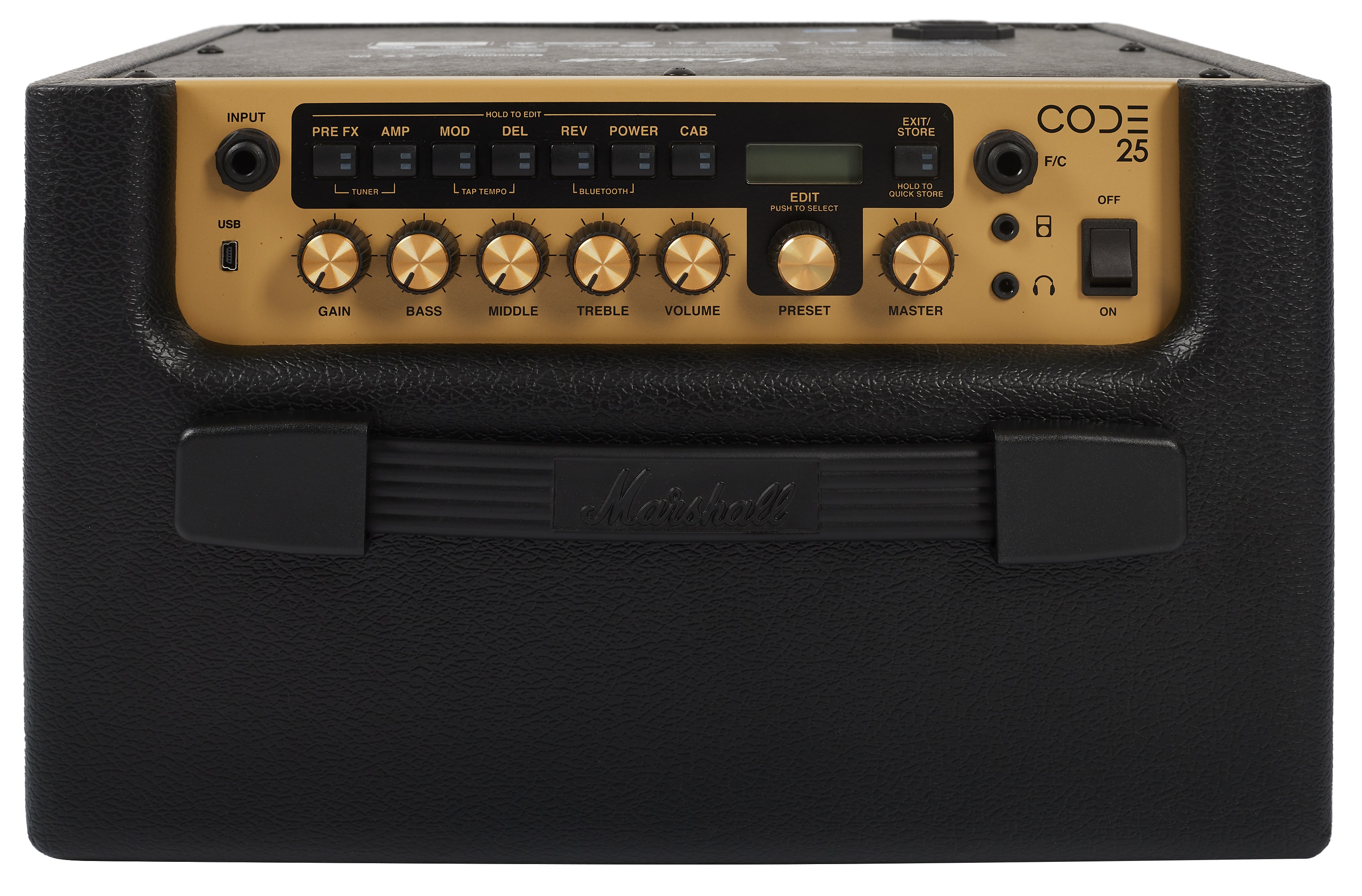Gitarové modelingové kombo Modelingové kombá Marshall CODE ponúkajú prierez zvukovým charakterom nástrojov Marshall tak, ako sa menil v priebehu desaťročí s vývojom modernej populárnej hudby. Potreby dnešných gitaristov zvýrazňuje pripojenie Bluetooth a možnosť ovládať kombo a streamovať hudbu z mobilného zariadenia (iOS, Android) prostredníctvom aplikácie Gateway a konektora USB na pripojenie k DAW na počítači/notebooku/tablete. Model CODE25 ponúka výkon 25 W z 10-palcového reproduktora. Jednotlivé emuláci