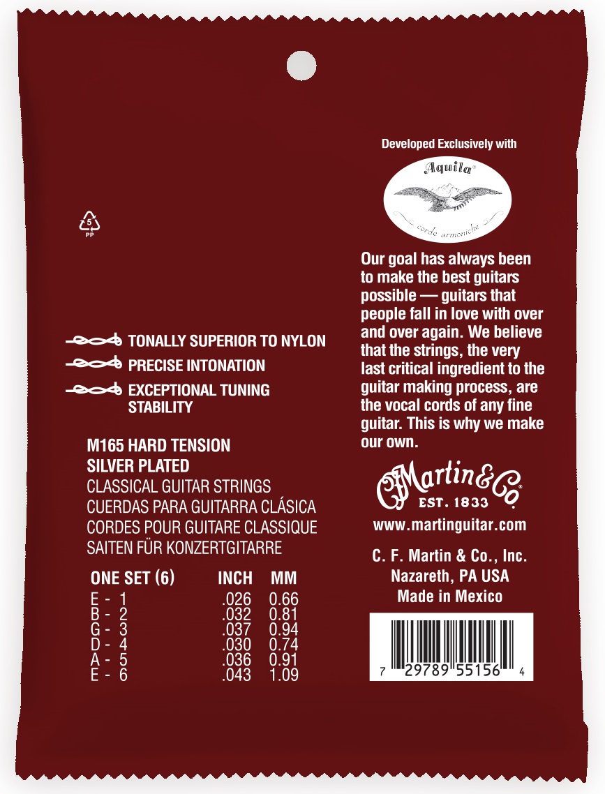 Nylonové struny na klasickú gitaru Prémiové struny zo série Magnifico renomovanej značky Martin boli vyrobené v spolupráci so spoločnosťou Aquila z novo vyvinutého syntetického materiálu Nylgut, ktorý verne napodobňuje zvukové vlastnosti zvieracích strún, ktoré sa na výrobu strún používali až do druhej polovice dvadsiateho storočia. Vďaka tomuto materiálu môžete svojej gitare dodať tradičný zvukový charakter, ktorým sa pýšili majstri gitary devätnásteho a minulého storočia.