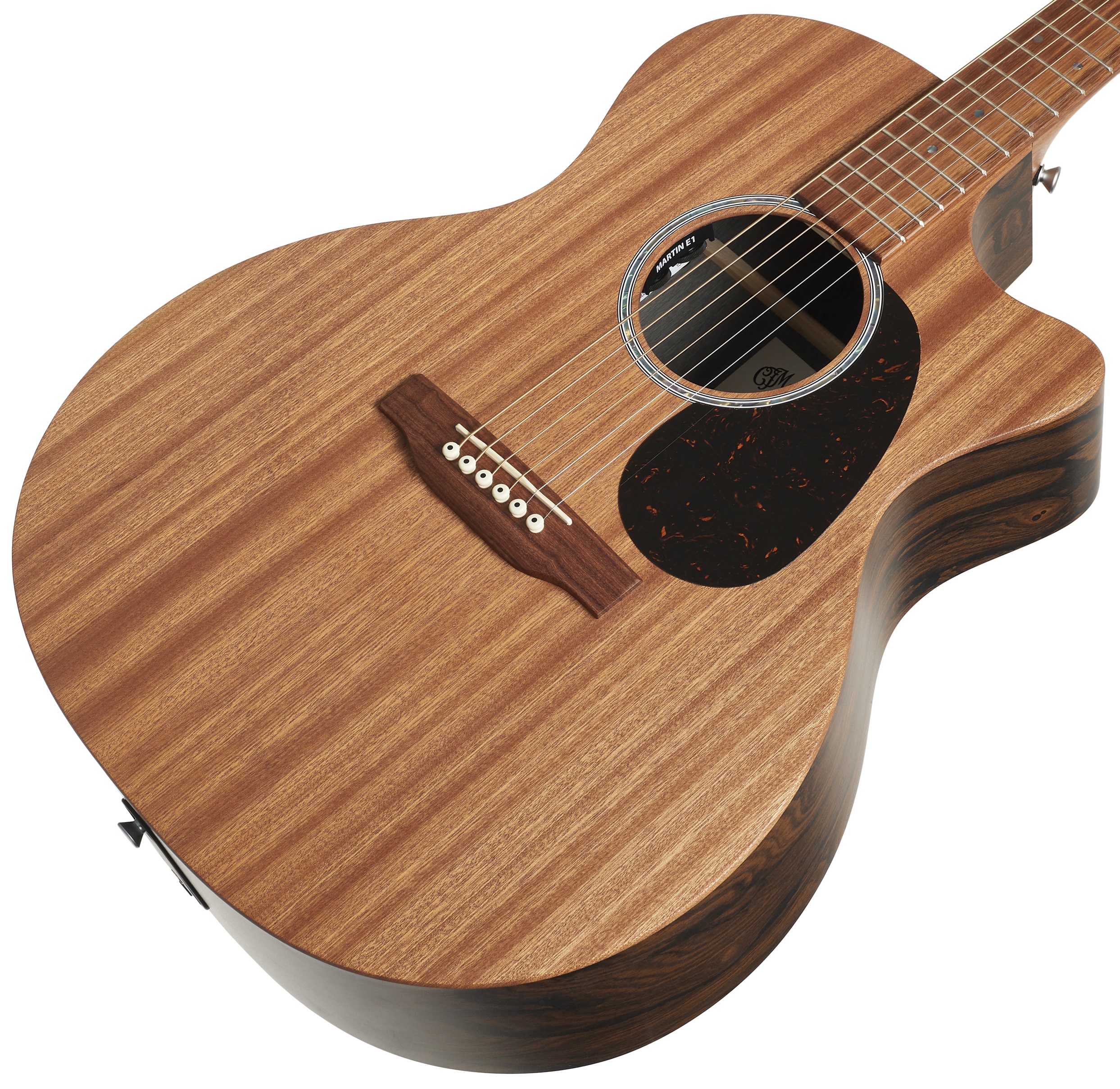 Elektroakustická gitara Americká séria Martin X ponúka cenovo dostupnejšie elektroakustické gitary vyrobené v Mexiku, ktoré obohacujú klasický vzhľad a zvuk nástrojov Martin o moderné prvky v podobe obnoviteľných komponentov, kompozitných materiálov a elektroniky. Elektroakustická gitara Grand Performance Martin GPC-X2E,Sapele/Ziricote HPL je nástroj univerzálne vhodný na hru prstami a trsátkom. Jej predná doska je vyrobená z masívneho sapele, zadná doska a luby sú z moderného HPL materiálu v exotickej ziri