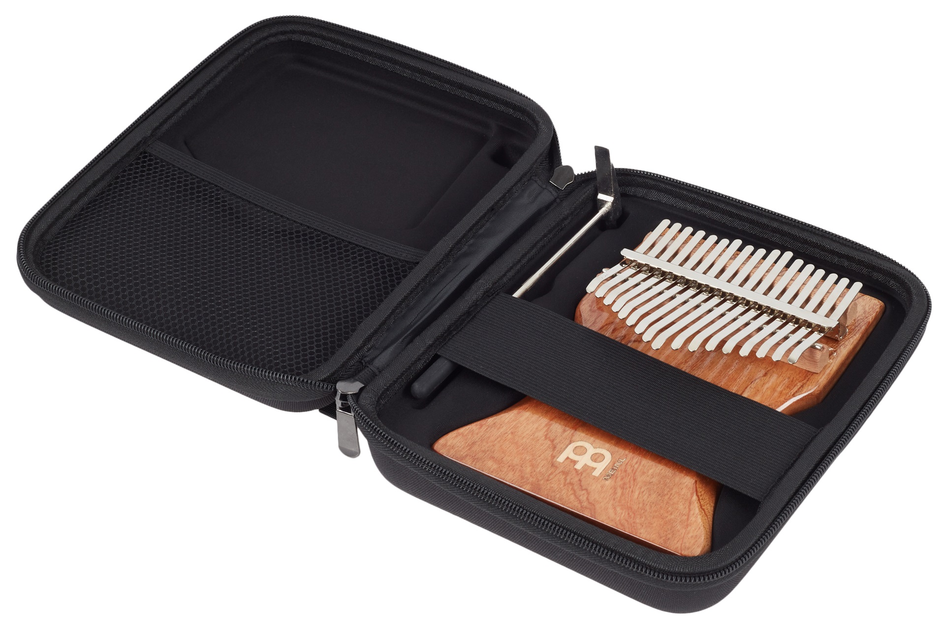 Kalimba Kalimba je jedinečný melodický nástroj, ktorý dodá vašej produkcii alebo živému vystúpeniu jedinečný a nezameniteľný prvok. Pochádza z Afriky, kde sa používa už stáročia, a možno ho použiť na sprievodnú alebo sólovú hru. Tento model je vyrobený z kvalitného sapele dreva a vďaka svojmu ladeniu sa skvele hodí prakticky do každej situácie. Súčasťou balenia je aj puzdro na prenášanie, čistiaca handrička a kladivko na ladenie nástroja, ak je to potrebné.