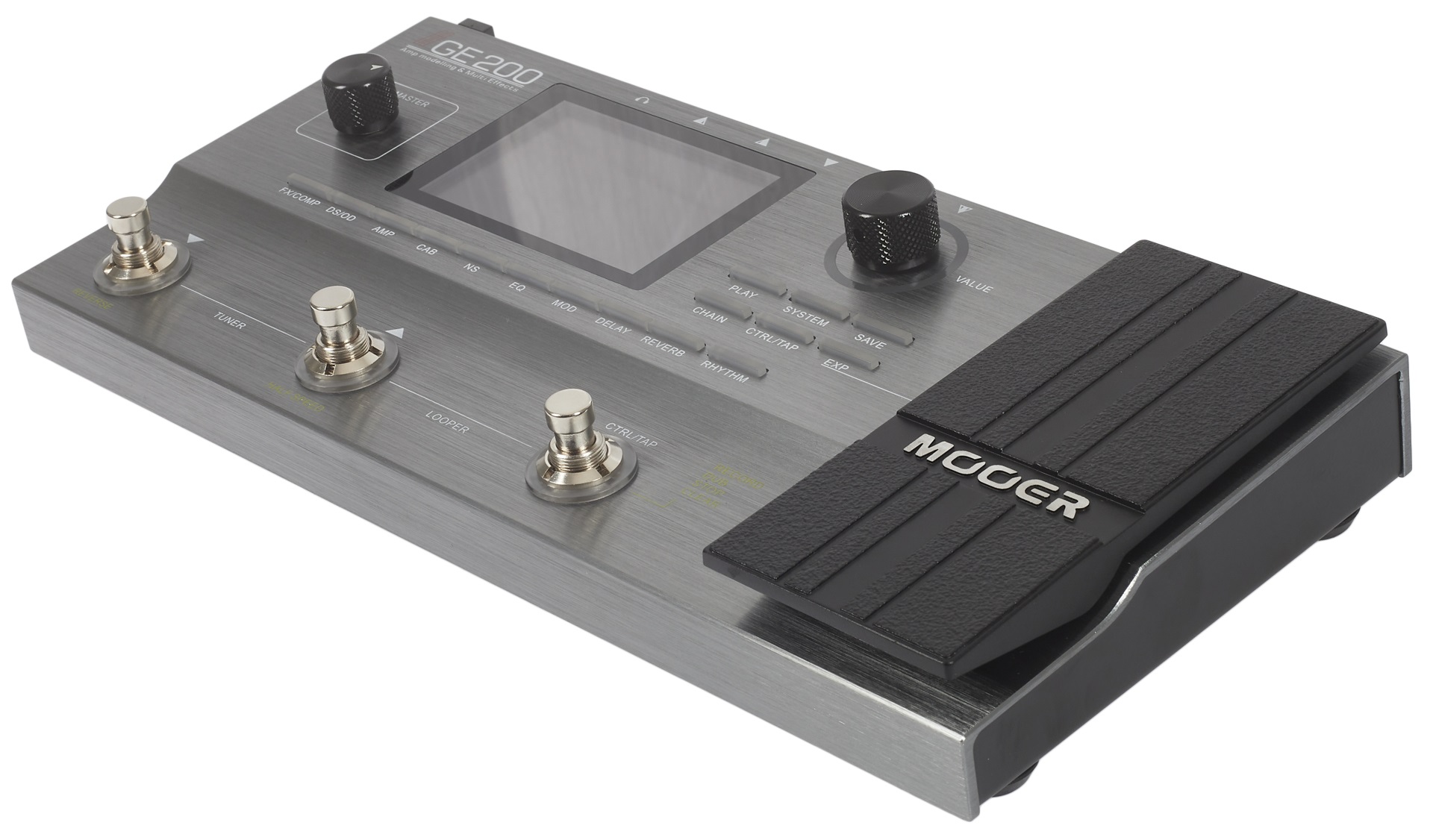 Gitarový multiefekt MOOER GE200 je gitarový multiefekt s integrovaným expression pedálom, ktorý je vybavený technológiou modelovania zosilňovačov. Ponúka celkom 151 vysokokvalitných gitarových efektov vrátane kompresora, overdrive, noise gate, EQ, modulácie, filtra, delay a reverbu. Nájdete tu aj 55 vysokokvalitných gitarových simulácií, ktoré sú ľahko prístupné prostredníctvom intuitívneho používateľského rozhrania s digitálnym displejom. Ovládanie uľahčuje aj séria tlačidiel na nastavenie