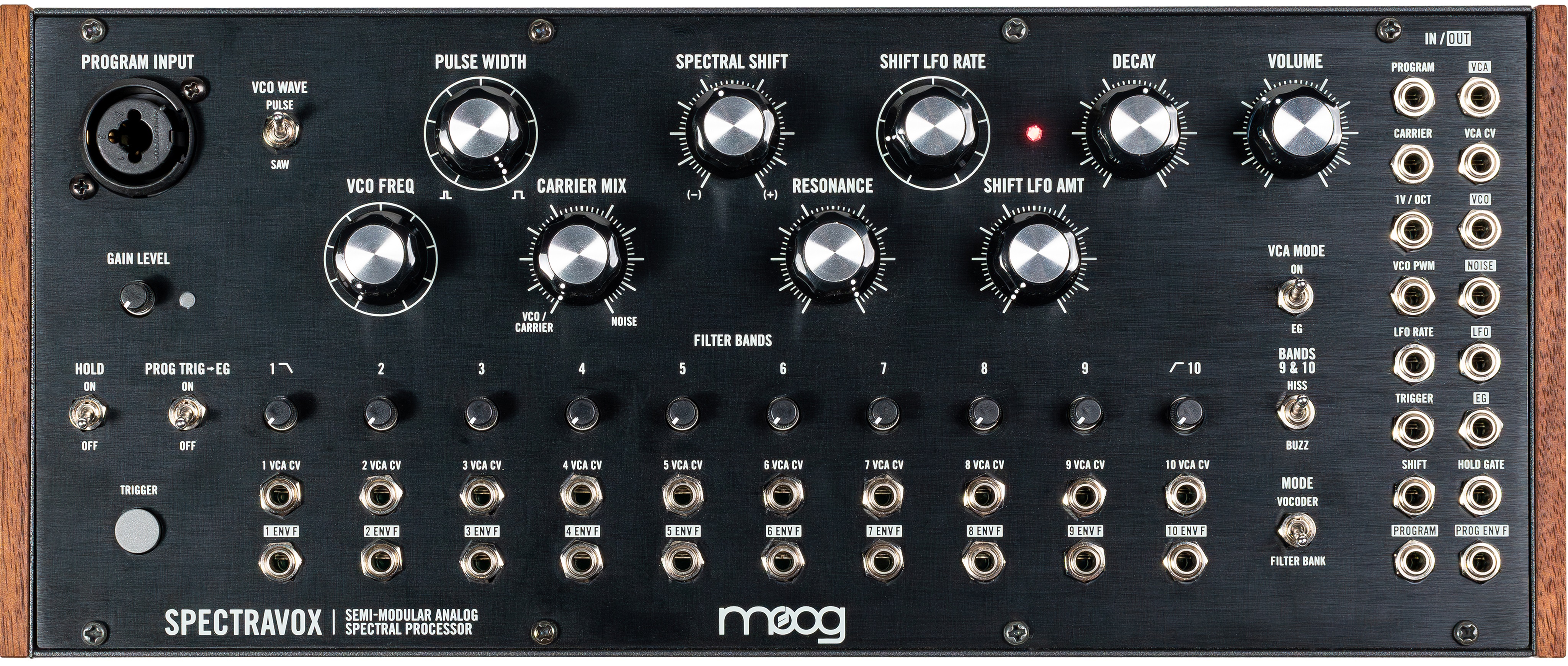 Analógový syntezátor Moog Spectravox je prelomový syntetizátor, ktorý predstavuje najnovší prírastok do rodiny semi-modulárnych syntetizátorov Moog a zároveň je vylepšenou verziou limitovanej edície Moogfest. Tento jedinečný nástroj využíva analógový spektrálny procesor s 10-pásmovou bankou filtrov, vďaka čomu môžete vytvárať živé dronové zvuky a pestré tónové zmesi. Spectravox dokáže pridať rezonančnú hĺbku a psychedelické spektrálne pohyby akémukoľvek externému zvuku, a ak k nemu pripojít