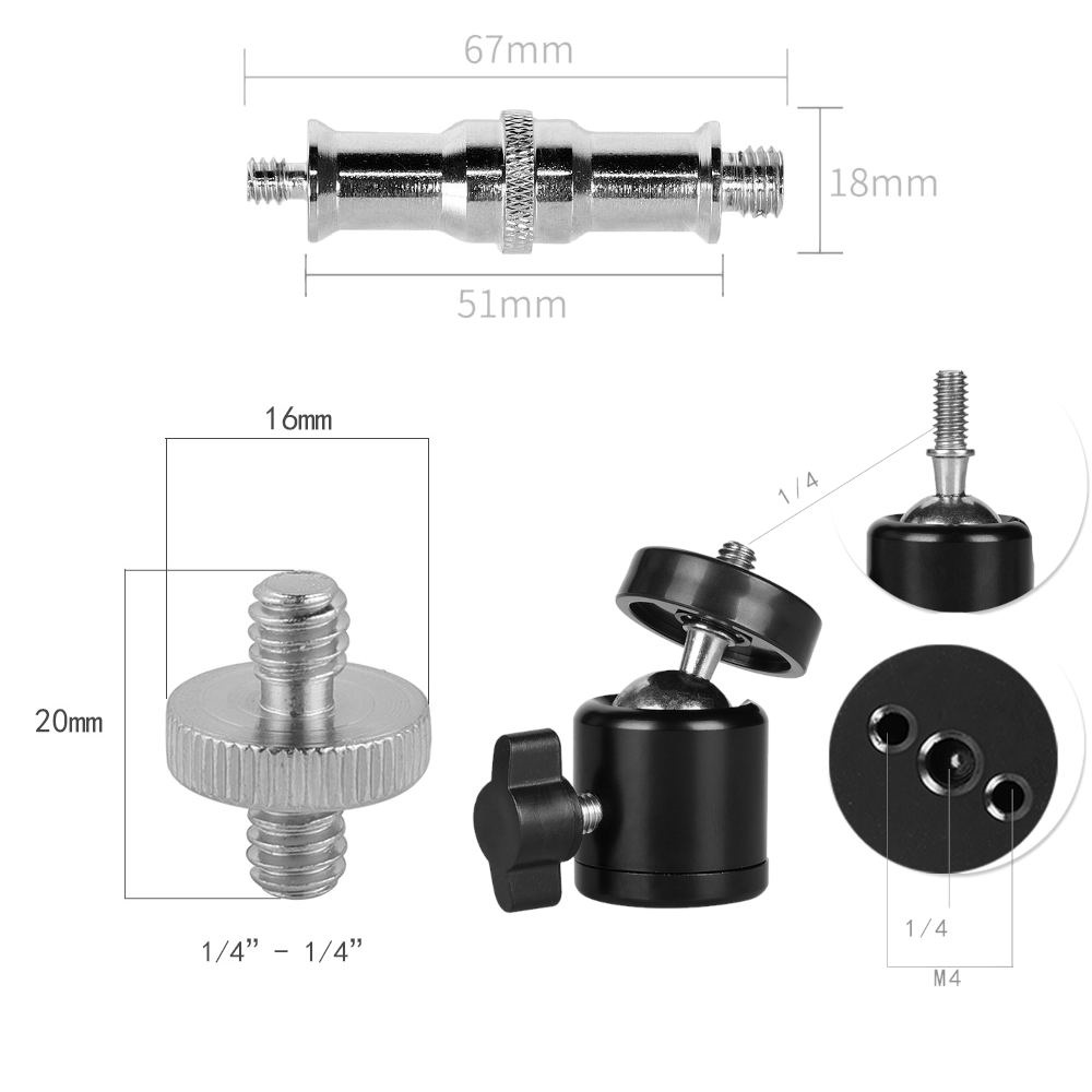 Adaptér Univerzálna sada audio/foto/video adaptérov. Balenie obsahuje guľovú spojku so skrutkou 1/4″, spojku 1/4″ – 1/4″ a redukciu so závitom 1/4″ – 3/8″.