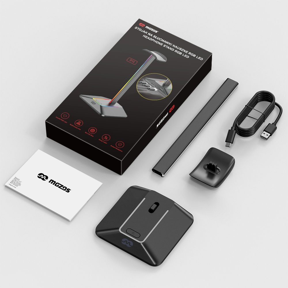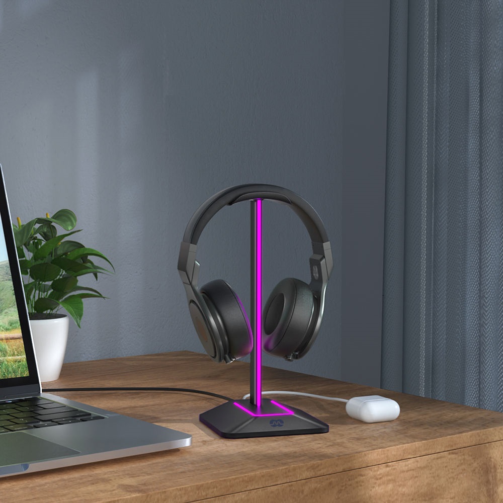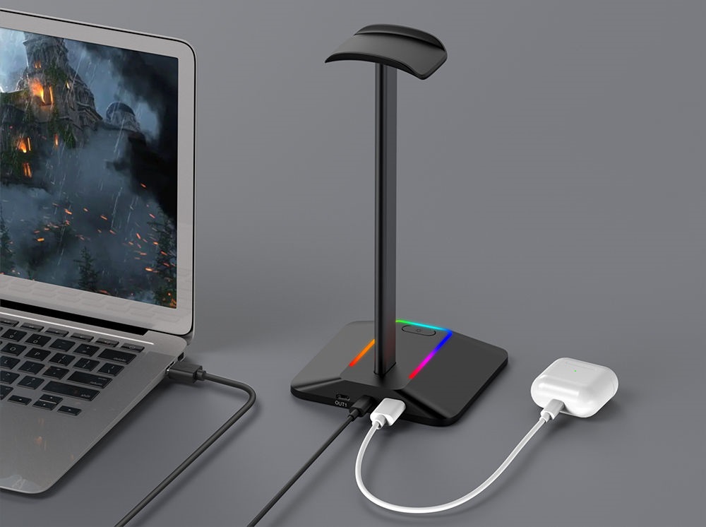 Držiak na slúchadlá Držiak na slúchadlá s LED RGB podsvietením a portom USB-C.