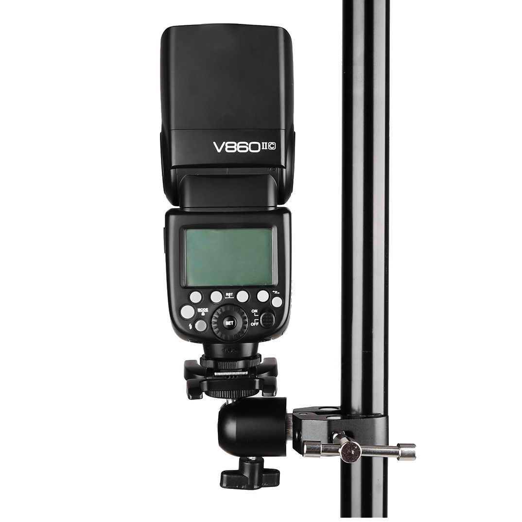Držiak Univerzálny držiak vhodný pre ručné rekordéry, exteriérové kamery, blesky, LED svetlá a ďalšie zariadenia potrebné na výrobu AV materiálov. Držiak sa upevňuje pomocou závitovej skrutky na tyč mikrofónového stojana s priemerom 10 až 50 mm. K držiaku môžete pripojiť iné adaptéry so závitom 1/4″ alebo 3/8″.
