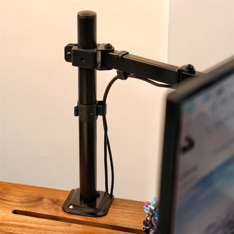 Držiak Mozos MS02 je praktický držiak na počítačové monitory, ktorý možno ľahko pripevniť na dosku stola. Získate tak estetickejší priestor a viac možností na umiestnenie monitora. Oceľová konštrukcia a maximálna nosnosť 9 kg zaručujú kompatibilitu s prakticky všetkými dostupnými monitormi s montážnym štandardom Vesa 100 x 100 mm a veľkosťou uhlopriečky 10″ – 32″. K dispozícii budete mať funkcie naklonenia o 90°, otočenia o 360° a pivotu na zmenu orientácie panela. Vďaka rýchlomontážnym dos