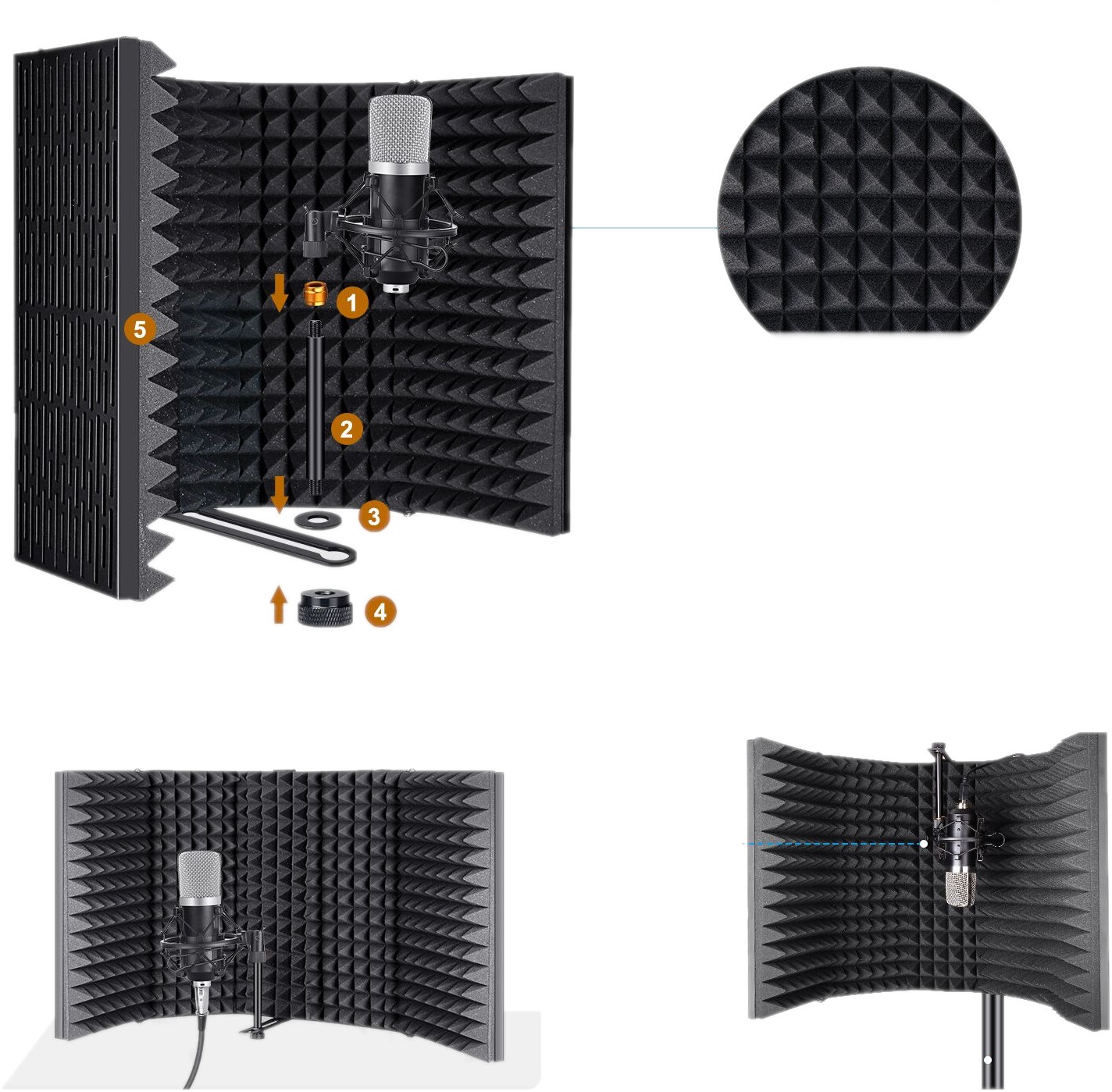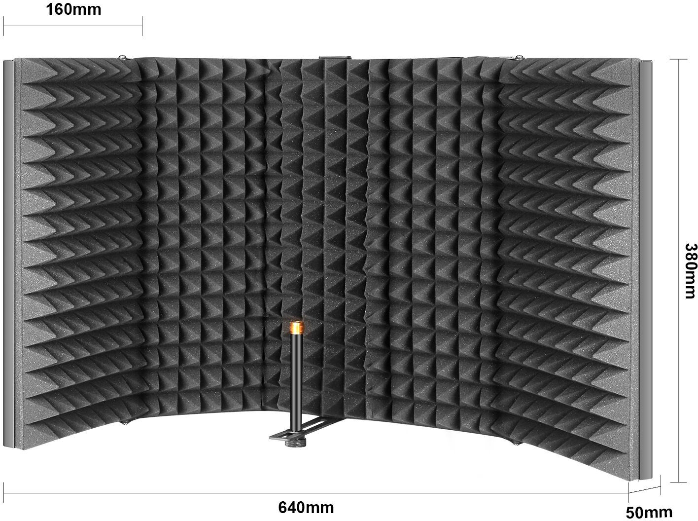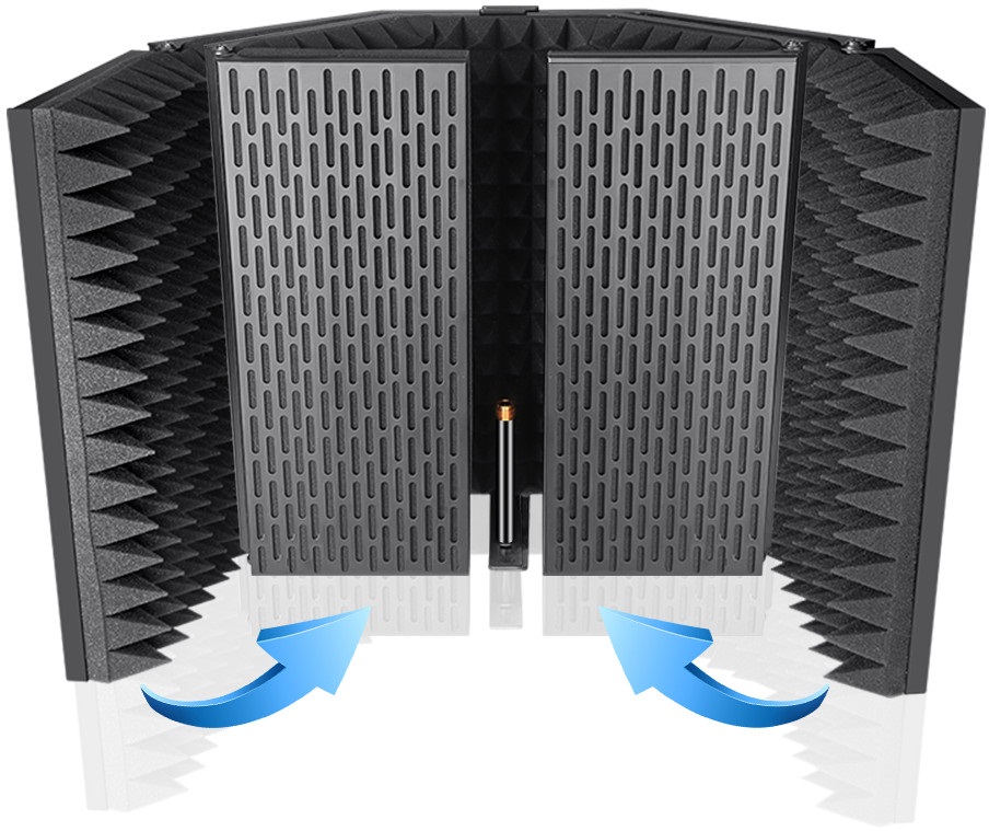 Akustický paraván Obrazovka mikrofónu na získanie čistého signálu bez nežiaduceho šumu a rušenia. Skvelé na nahrávanie vokálov, podcastov pre rádio alebo YouTube, čo určite ocenia mladí a začínajúci vlogeri. Vnútorná stena je vyrobená z kvalitnej akustickej peny pohlcujúcej hluk, vonkajšia stena je pokrytá hliníkovou konštrukciou na bezpečnú prepravu a skladovanie. Zásteru je možné pripevniť k mikrofónnemu stojanu. Súčasťou balenia je príslušenstvo na pripevnenie k stojanu a montáž mikrofónu.