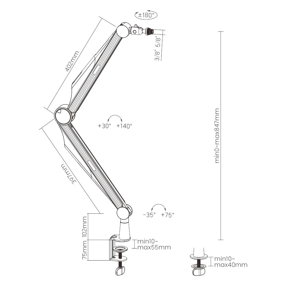 Mikrofónny stojan Mozos SB41 je praktický stolový mikrofónový stojan s mikrofónovým ramenom, ktorý sa pripevňuje na dosku stola s maximálnou šírkou 5,5 cm. Ponúka širokú kompatibilitu (3/8″ aj 5/8″ závit), ako aj možnosti nastavenia a nosnosť 1 kg. Stojan sa skladá z oceľových, hliníkových a plastových častí. Rozmery: 60 x 359 x 890 mm.