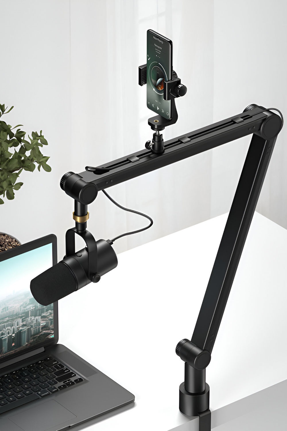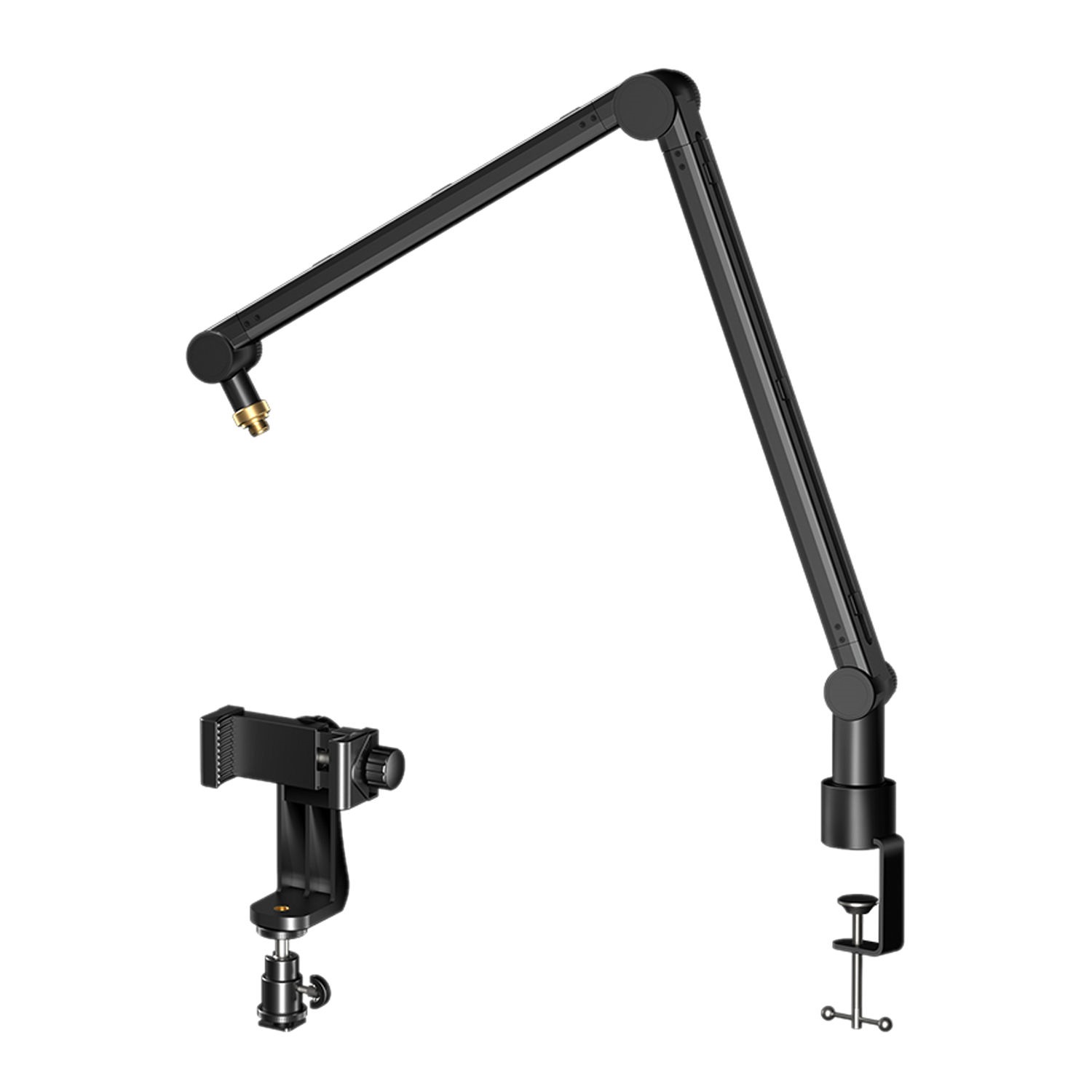 Mikrofónne rameno Mozos SB43 je vysokokvalitné a praktické mikrofónové rameno, ktoré okrem vynikajúcej nosnosti a stability hliníkovej konštrukcie ponúka aj praktický držiak na telefón a organizér káblov. Rameno poskytuje širokú kompatibilitu s mnohými mikrofónmi. Vôbec nezáleží na tom, či máte základný mikrofón alebo profesionálny štúdiový mikrofón. Kompatibilita s oboma štandardnými závitmi zaručuje rýchlu a jednoduchú inštaláciu. Silikónové upínacie podložky chránia váš stôl pred poškria