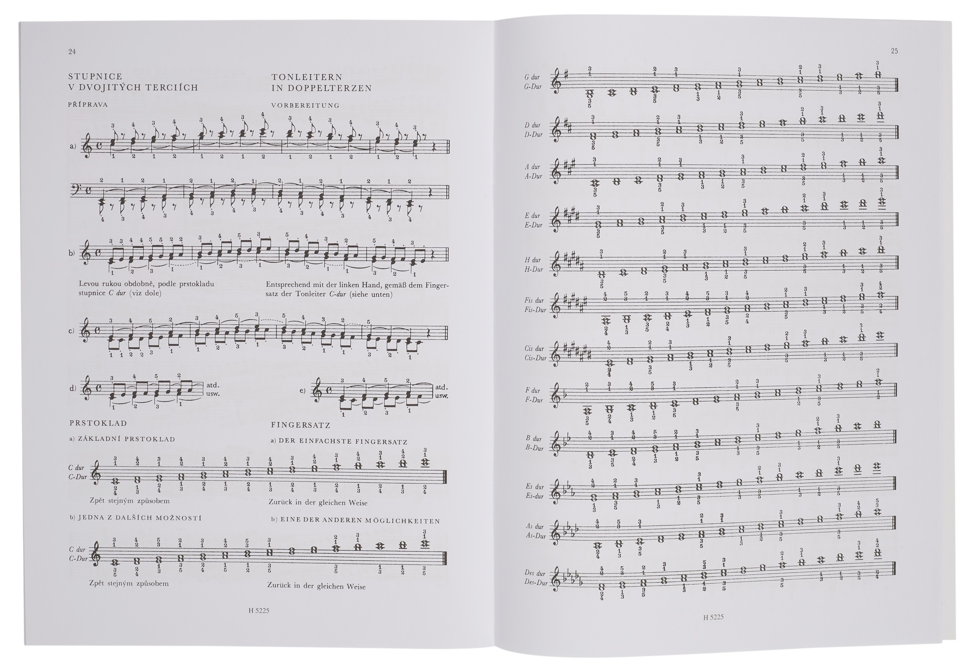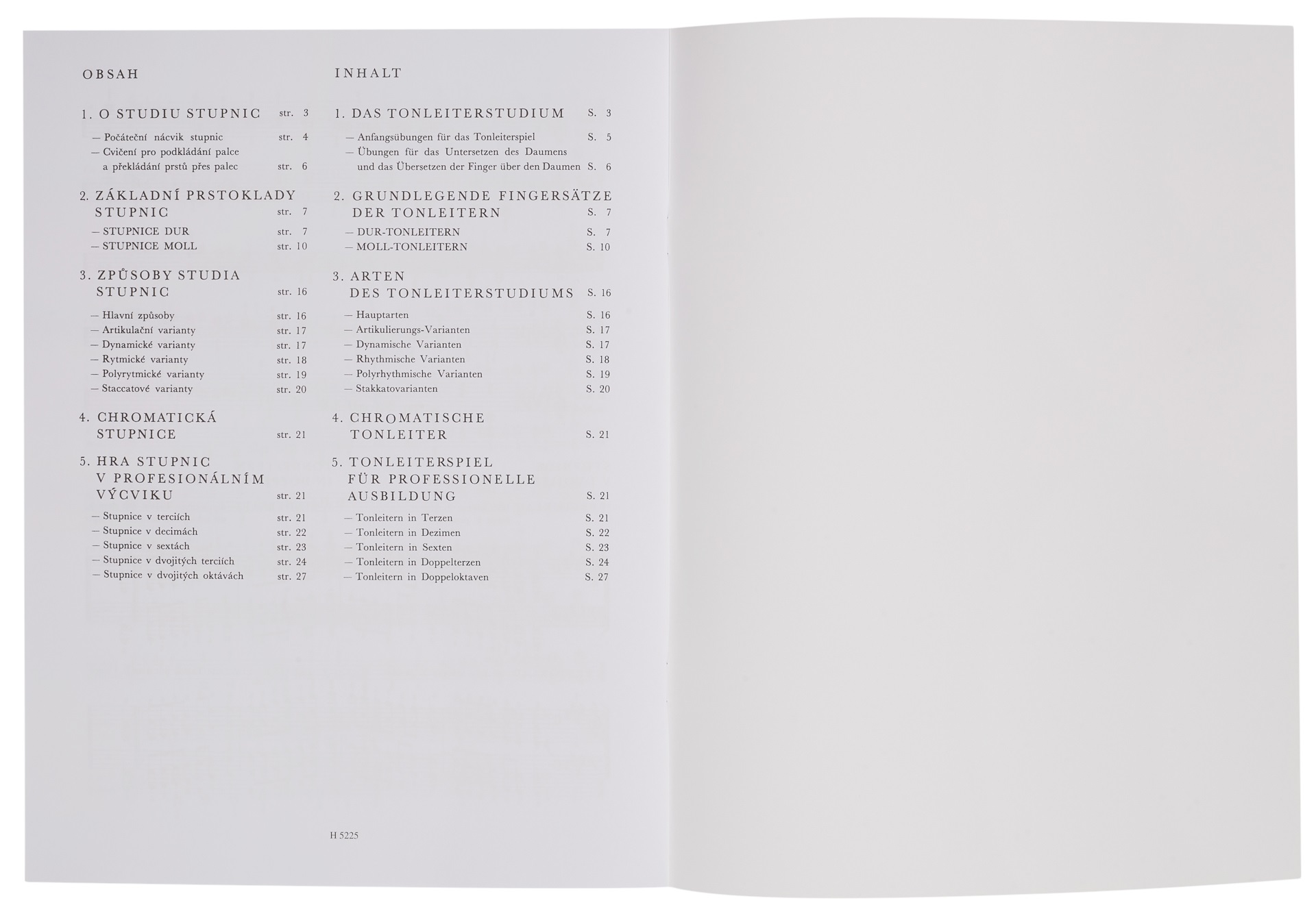 Hudobná škola Prehľadné návody na cvičenie stupníc s prstokladmi a cvičnými variáciami pripravia klaviristov na bezpečné zvládnutie stupnicových pasáží. Obsah: 1. O štúdiu váh: Začínajúce cvičenie stupnice Cvičenia na opretie palca a prsta nad palcom 2. Základné prstoklady stupníc: Hlavné stupnice Stupnica mol 3. Metódy štúdia váh: Hlavné metódy Varianty artikulácie Dynamické varianty Rytmické varianty Polyrytmické varianty Staccato Varianty 4. Chormatická stupnica 5. Hranie stupníc v rámci profesionálnej p