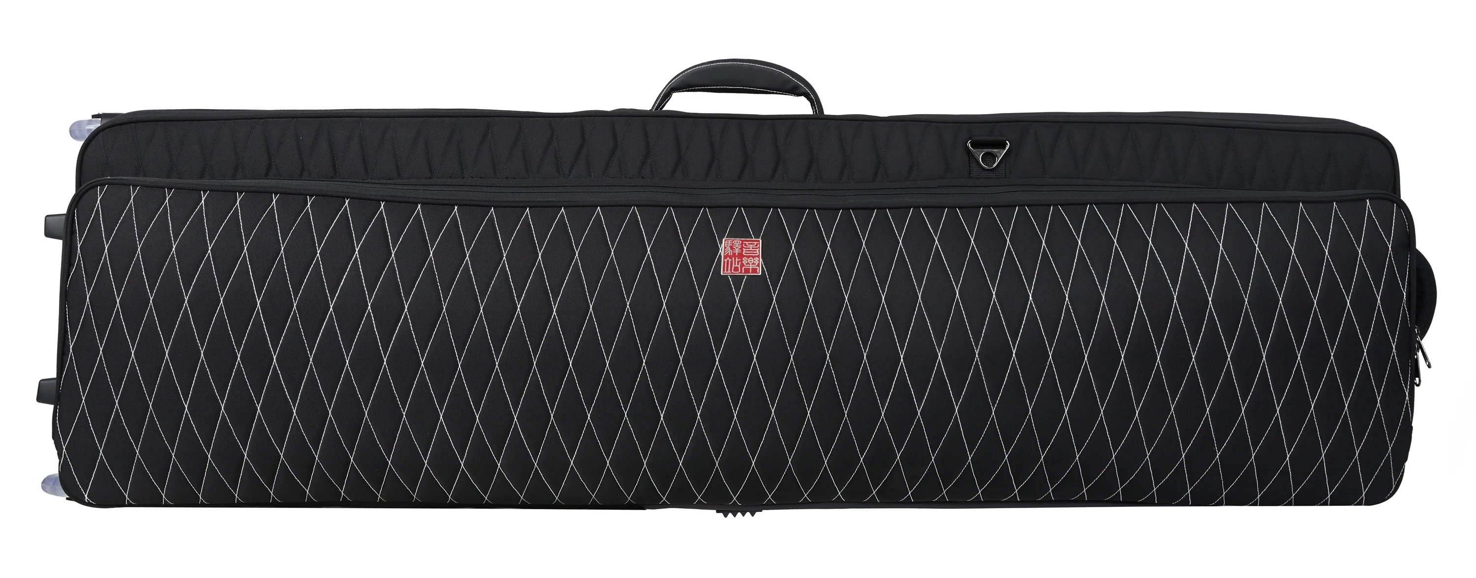 Klávesový obal Tieto klávesové puzdrá majú až 30 mm hrubé, mimoriadne pevné polstrovanie z laminovanej peny EPE a polyuretánu, ktoré je veľmi ľahké a spoľahlivo chráni váš nástroj pred nárazmi. Vonkajšia strana je vyrobená z nepremokavého polyesteru 900D, ktorý je odolný voči roztrhnutiu alebo opotrebovaniu, zatiaľ čo vnútorná strana je pokrytá hrubou vrstvou mäkkého plyšu. Na pohodlné prenášanie je puzdro vybavené polstrovanými rukoväťami po stranách a v hornej časti a odnímateľným ramenným popruhom. Určit