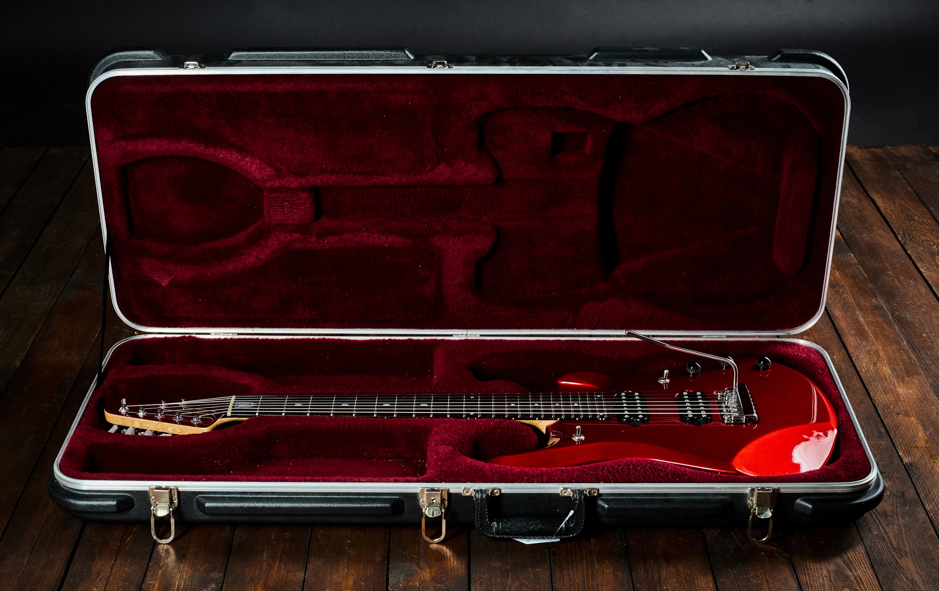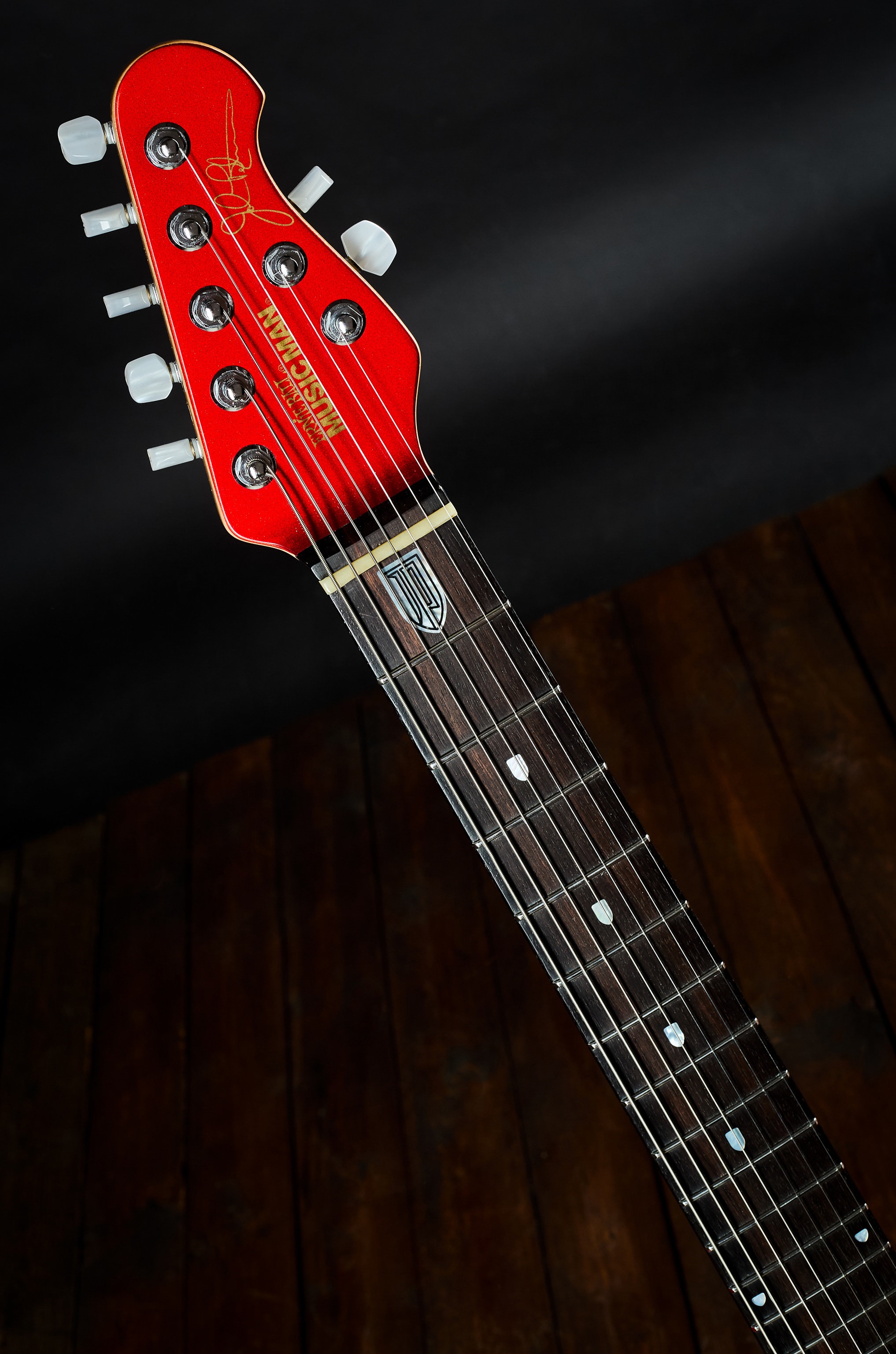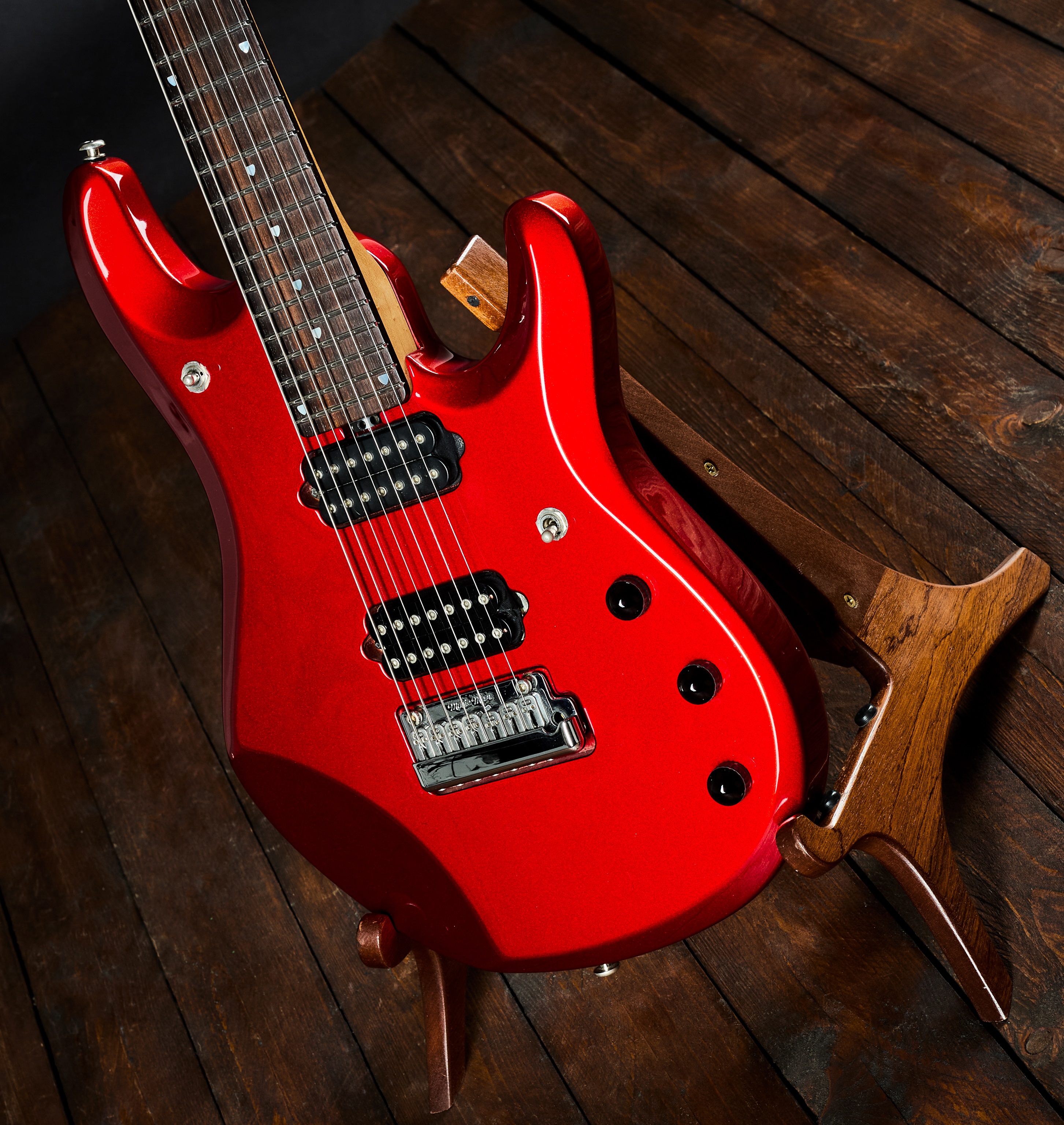 Elektrická gitara Sedemstrunová verzia modelu JP6 s piezoelektrickým snímačom v hlavici, vyhotovená v červenej metalíze vrátane zodpovedajúcej hlavice. Nástroj bol vyrobený v roku 2006 v USA. Signature model Johna Petrucciho z kapely Dream Theater predstavuje priemyselný etalón v oblasti továrensky vyrábaných gitár – kvalita spracovania nepozná kompromisy a ergonómia ovládania a hry na nástroj je vynikajúca, nehovoriac o kvalite tónu, ktorá je vďaka vybraným drevinám nepopierateľná. Hmatník je palisandrový,