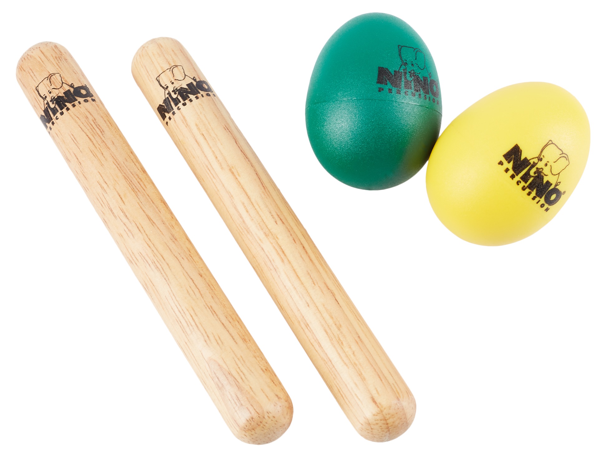 Perkusová sada Táto sada bicích nástrojov od spoločnosti Nino je vhodná nielen pre deti, ale aj pre všetkých ostatných hudobníkov, ktorí hľadajú lacné, ale kvalitné nástroje. V balení nájdete Jingle Stick s telom vyrobeným z ABS plastu, do ktorého je vložených šesť párov poniklovaných oceľových zvončekov, pár Claves vyrobených z kaučukového dreva, ktoré im dodáva veľmi príjemný a prirodzený zvuk, a pár šejkrov v tvare vajíčka, ktoré vydávajú veľmi jasný a čistý zvuk. Potom tiež bubon vyrobený z plastu ABS p