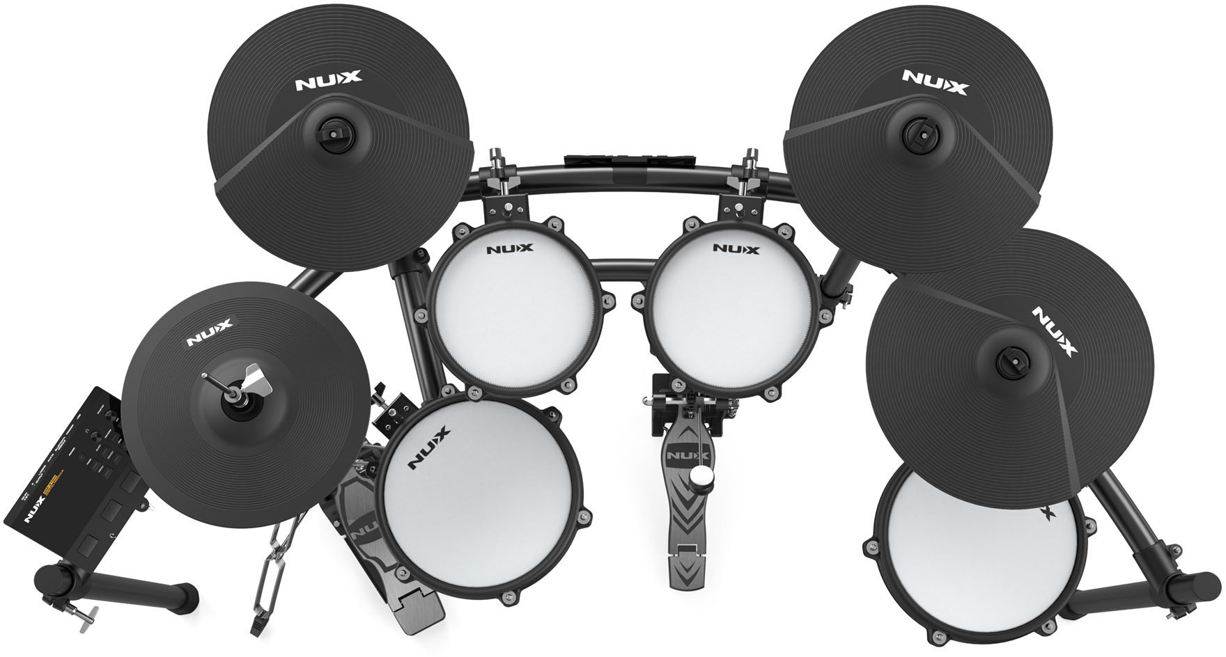Elektronická súprava bicích NUX DM-310H je profesionálna elektronická bicí súprava, ktorá ponúka realistický pocit z hrania a moderné technológie pre hranie aj nahrávanie. Vďaka samostatnému stojanu na hi-hat, väčším padom a premyslenej ergonómii prináša prirodzenejšiu odozvu a pohodlnejšie rozloženie celej súpravy. Súprava je vybavená nezávislým hi-hatom s pohybovým senzorom, ktorý umožňuje plynulé prechody medzi otvorenou