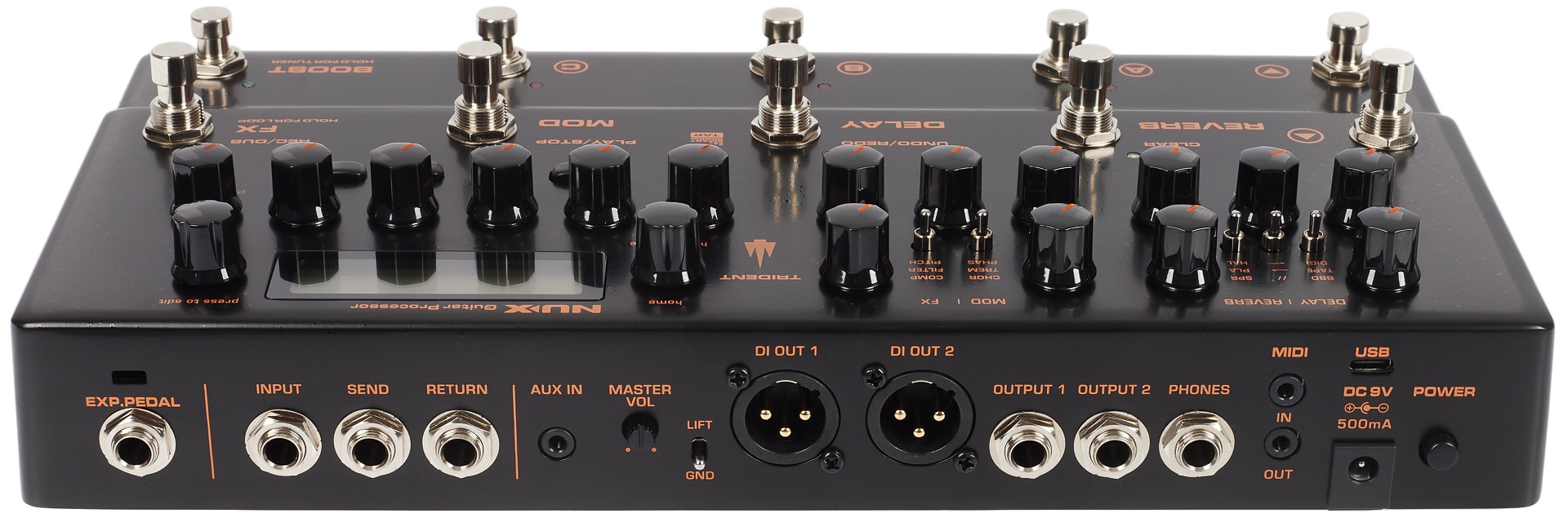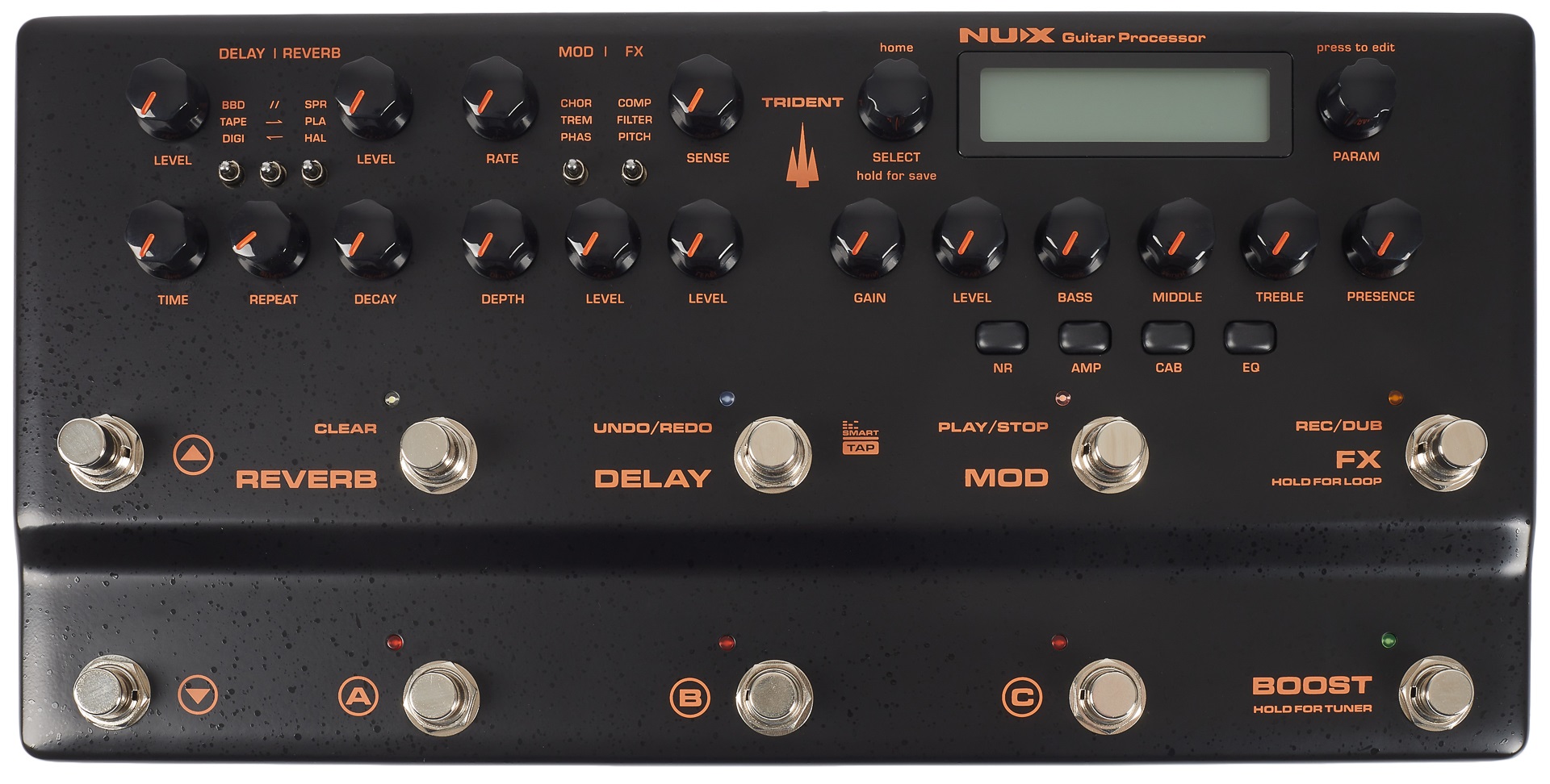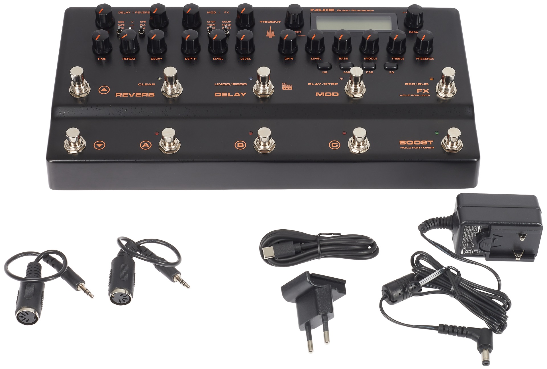 Gitarový multiefekt Modelovací efektový procesor NUX Trident NME-5 nadväzuje na gitarový multiefekt Cerberus a obohacuje ho o digitálne modelovanie gitarových zosilňovačov a efektov série MG. Vďaka dvom DSP čipom a pokročilej modelovacej technológii ponúka TSAC-4K 27 gitarových simulácií známych značiek, rovnaký počet IR reproduktorov (rozlíšenie 1024 vzoriek), ktoré môžete priradiť zosilňovačom, 32 vlastných IR slotov, 4 simulácie mikrofónových snímačov a celkovo 96 presetov. Súčasne možno používať desať e