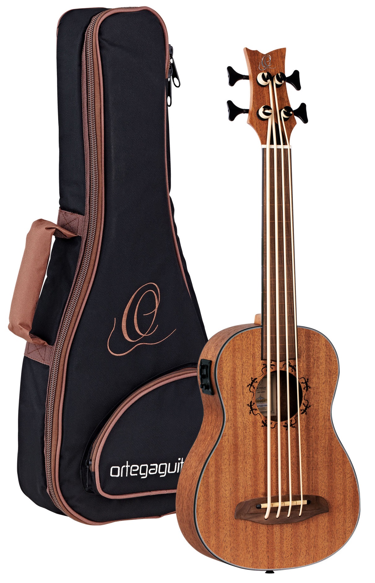 Basové bezpražcové ukulele Elektroakustické ukulele Lizzy zo série Lizard od Ortegy potvrdzujú, že príslovie „basy tvrdia muziku“ je všeobecne platné. Ide o basové ukulele, teda jedinečné nástroje, ktoré svoj potenciál odhalia najmä po zapojení do zosilňovača. Ich zvuk je príjemne guľatý a plný prekvapivo výrazných basov. Telo tohto bezpražcového ukulele je vyrobené z mahagónovej preglejky. Na mahagónový krk s dvojcestnou výstuhou nadväzuje hmatník z orechového dreva. Struny sú uložené v orechovom hmatníku