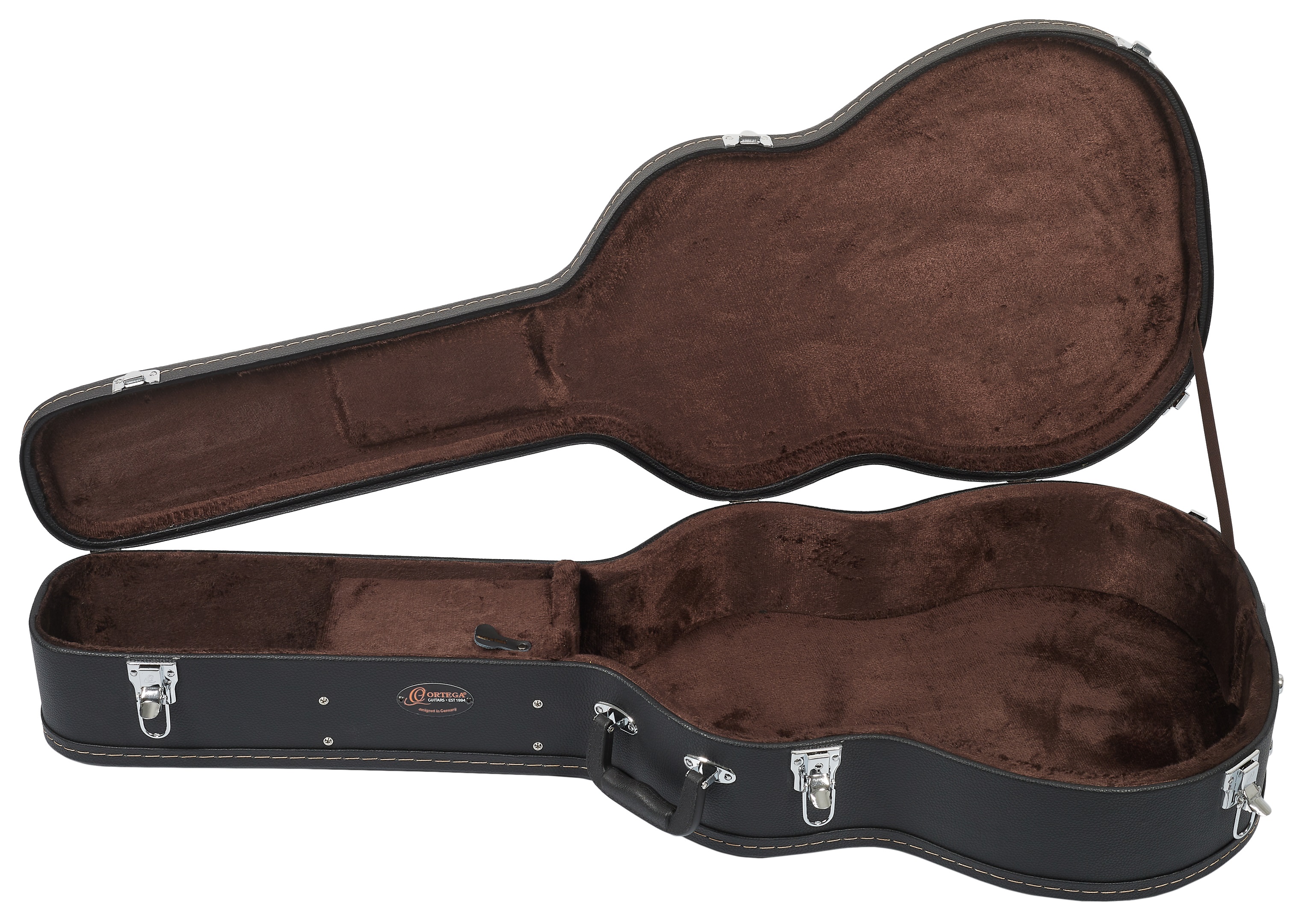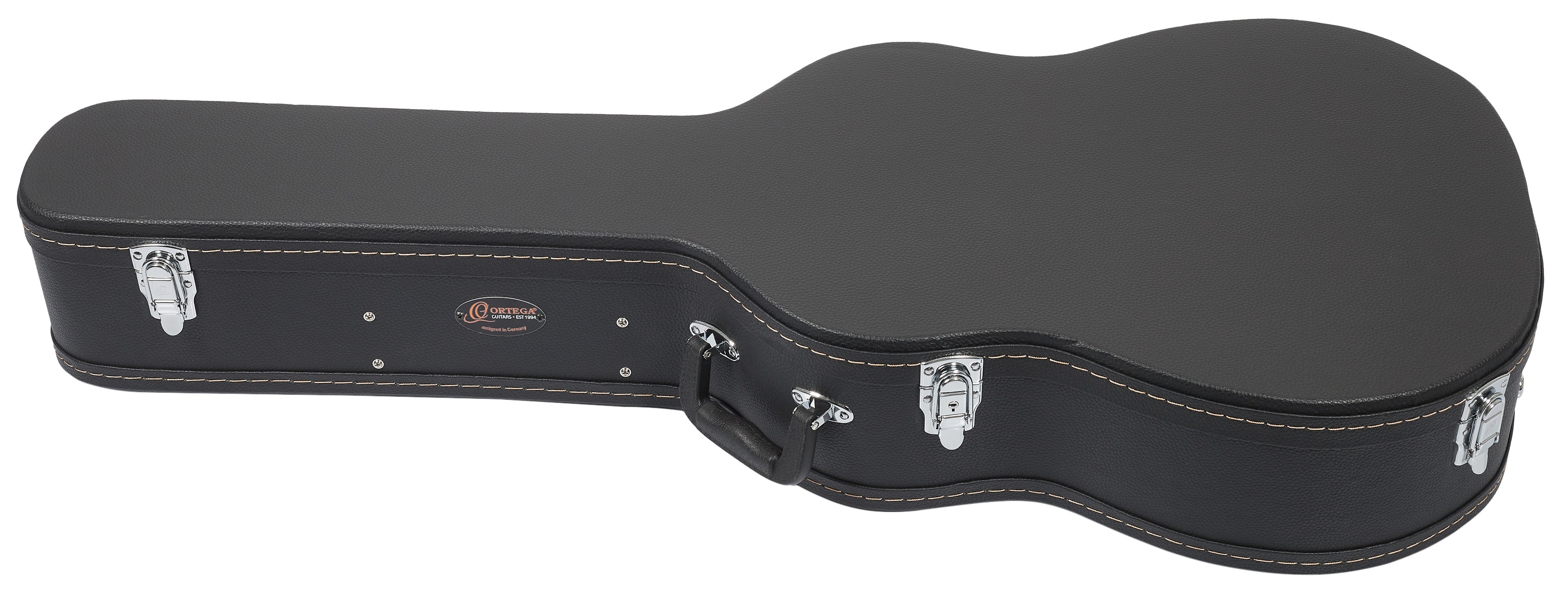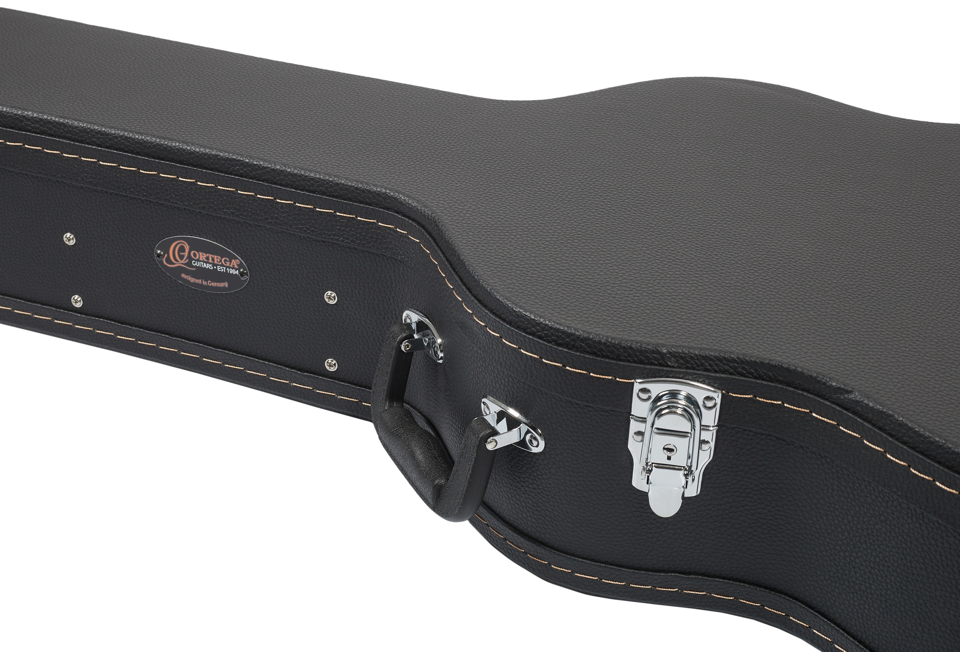 Kufor na akustickú gitaru Kufre na nástroje Ortega zo série Economy ponúkajú štandardnú pevnú preglejkovú konštrukciu s čiernym vinylovým poťahom za prijateľnú cenu. Vnútro je vyplnené pätnásť milimetrov hrubým polstrovaním pre väčšie pohodlie nástroja. Samozrejmosťou je priehradka na drobné príslušenstvo. Maximálnu bezpečnosť zaisťujú chrómové zámky a na manipuláciu s kufrom slúži robustná rukoväť. Tento konkrétny kufor je vhodný pre akustické gitary s tvarom dreadnought.