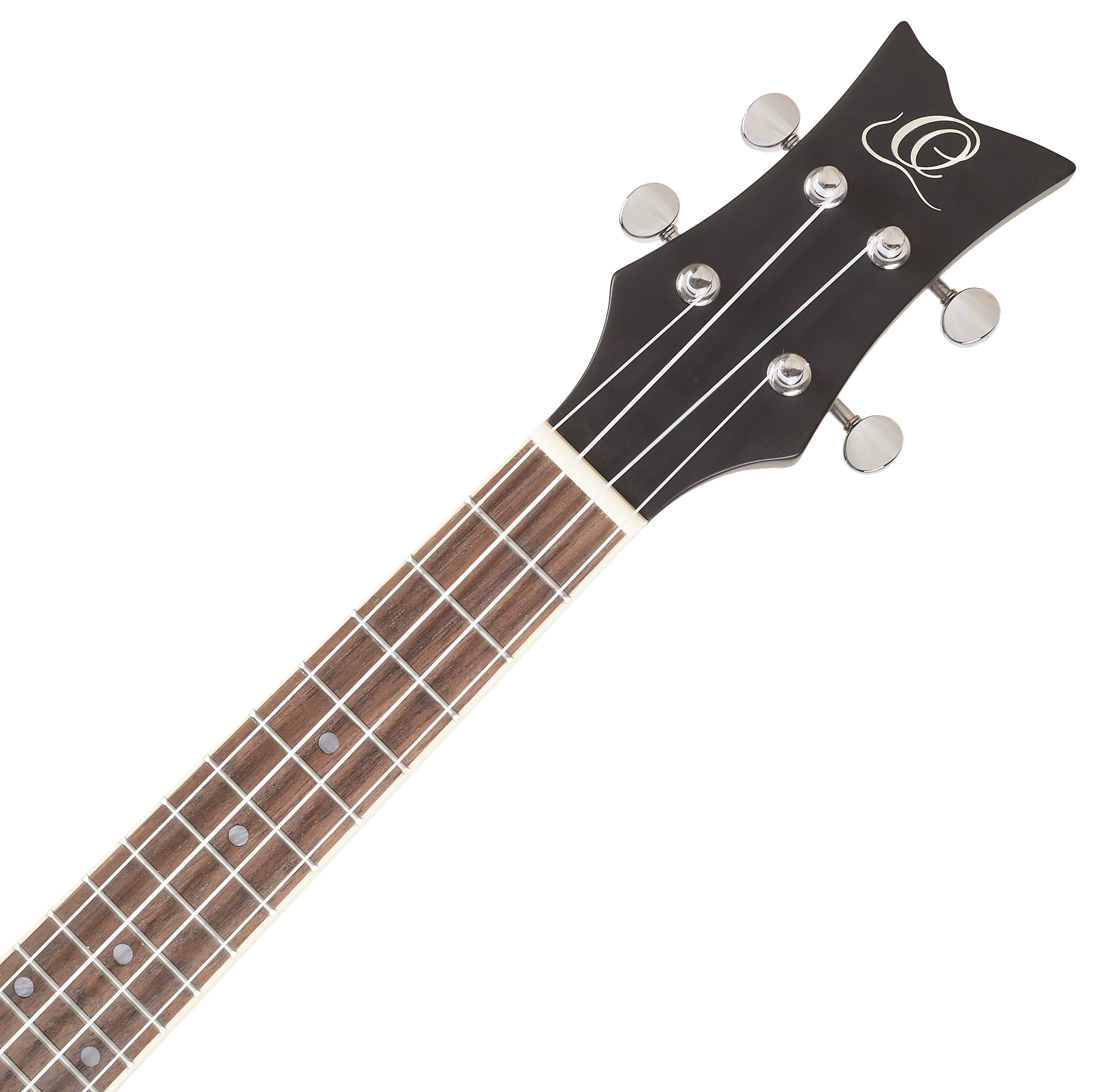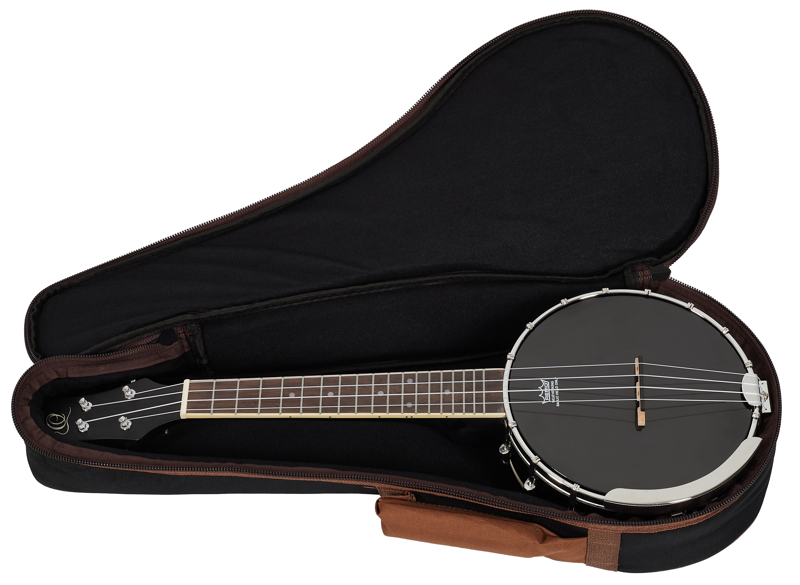 Bendžolele Banjo Ortega z radu Raven ponúka svieži moderný dizajn v podobe štýlovej pololesklej povrchovej úpravy v čiernej farbe a chrómového kovania. Banjo OUBJ100-SBK spája svet banja s kompaktným tvarom a hrateľnosťou ukulele. Ide o štvorstrunové banjolele typu closed back, t. j. s uzavretou zadnou doskou – rezonátorom z javorovej preglejky. Má javorový krk, ovangkolový hmatník s polohovými bodkami pre ľahšiu orientáciu, telo vyrobené z preglejky a Remo čiernu blánu pripevnenú k ráfiku. Struny sú uchyte