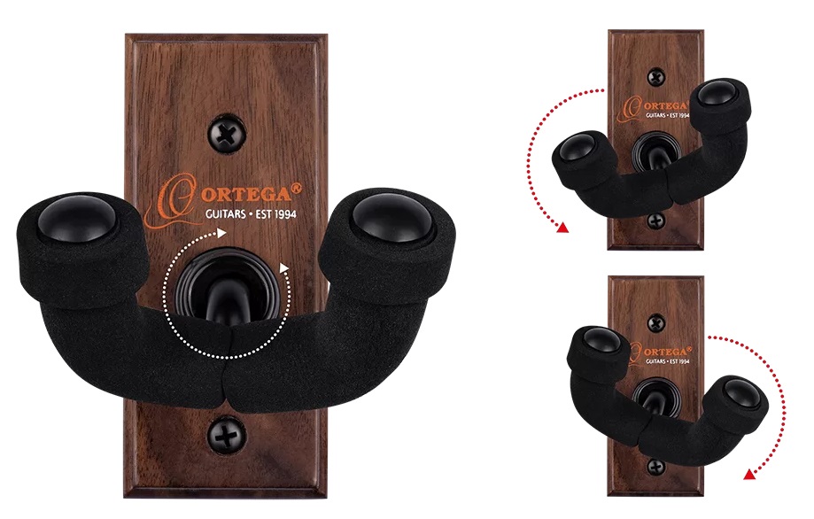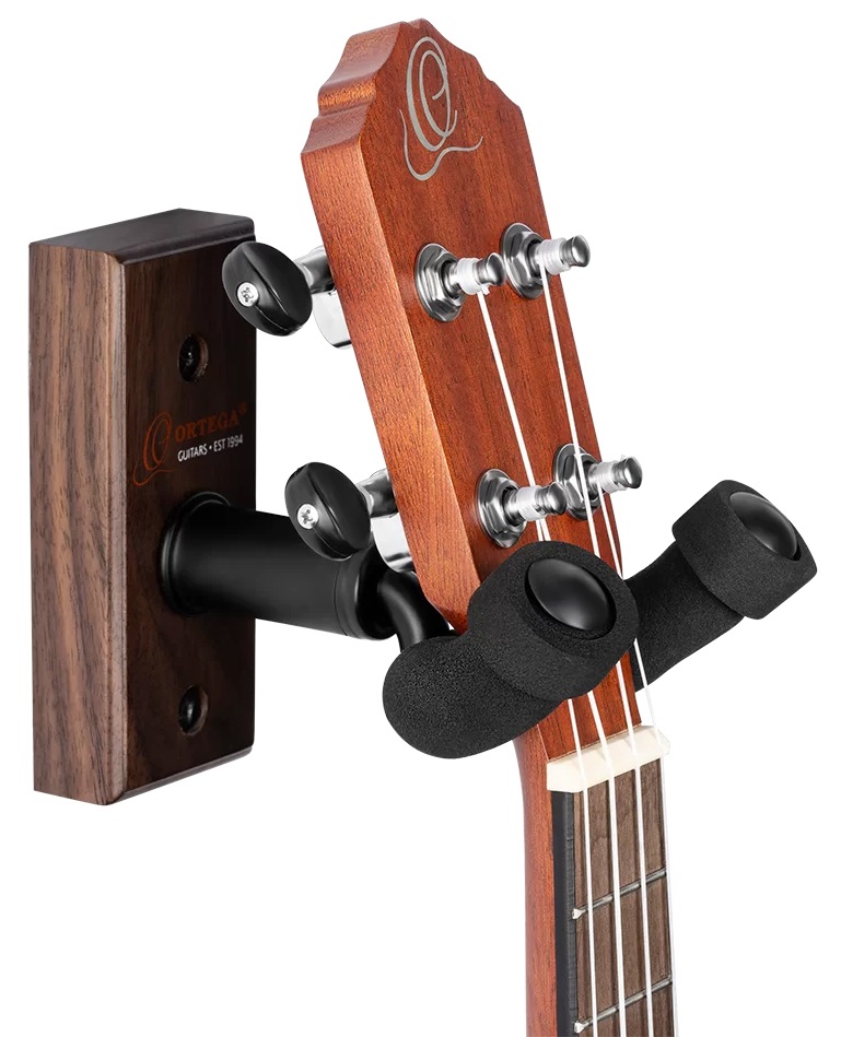 Vešiak pro ukulele Spoľahlivý a elegantný držiak s podstavcom z orechového dreva. Nástroj drží na mieste ergonomicky tvarovaná oceľová vidlica s ochranným penovým krytom. Otočná vidlica sa navyše sama prispôsobí tvaru hlavy nástroja, takže držiak možno použiť aj pre nástroje s atypickými hlavami. Vhodné pre ukulele.