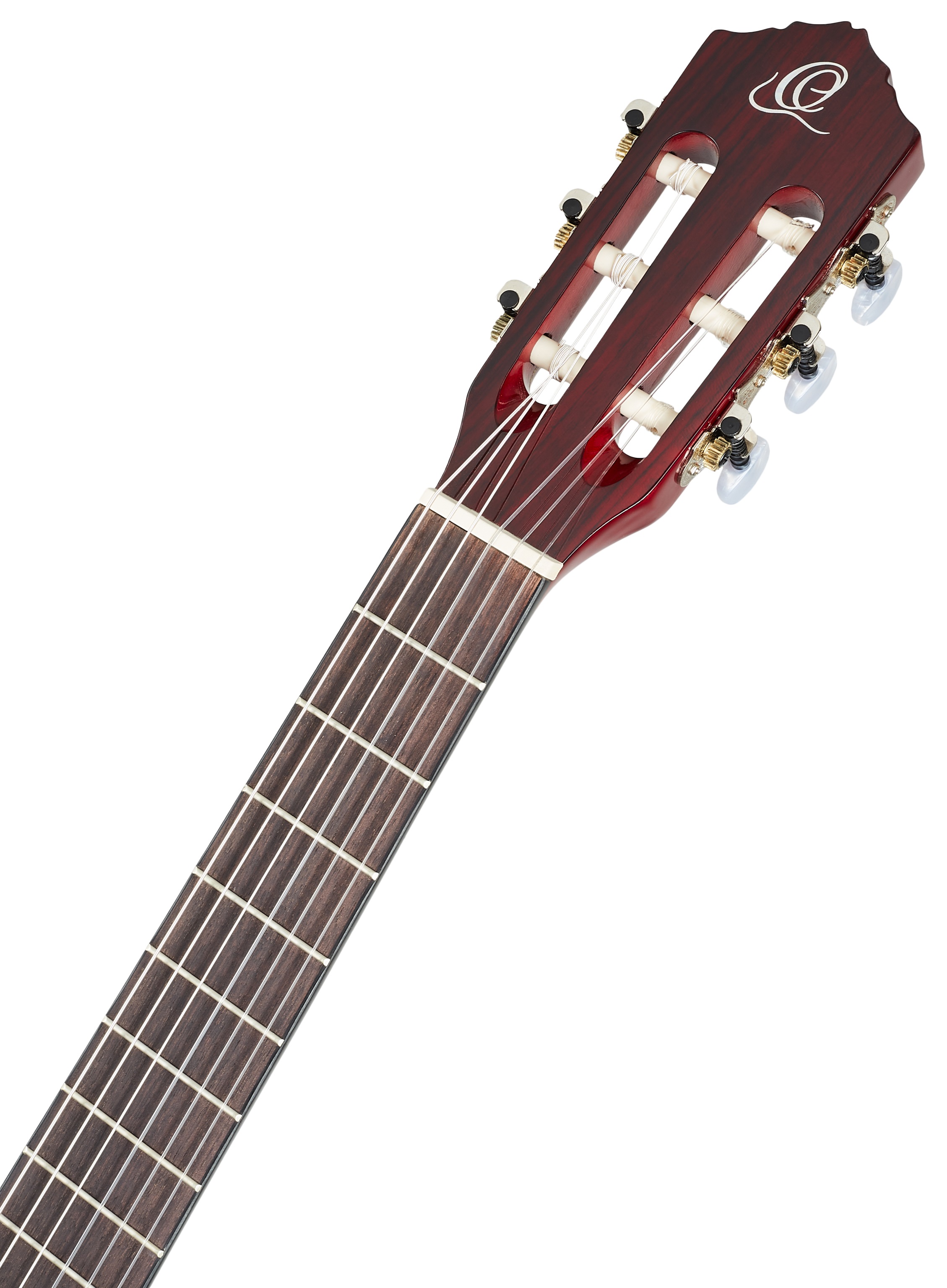 Klasická gitara Klasické gitary Ortega zo série Family sú ideálnou voľbou pre začínajúcich gitaristov, ktorí hľadajú kvalitný nástroj za dostupnú cenu. Príďte si ich vyskúšať a uvidíte. Ide o nástroje s laminovaným telom zo smrekovej alebo cédrovej preglejky a laminovanými mahagónovými lubmi a zadnou stranou, masívnym mahagónovým krkom s dvojcestnou výstuhou a orechovým hmatníkom. Modely 7/8 majú užší krk (47 mm pri nultom pražci namiesto tradičných 52 mm) a kratšiu menzúru – hru na tieto nástroje ocenia na