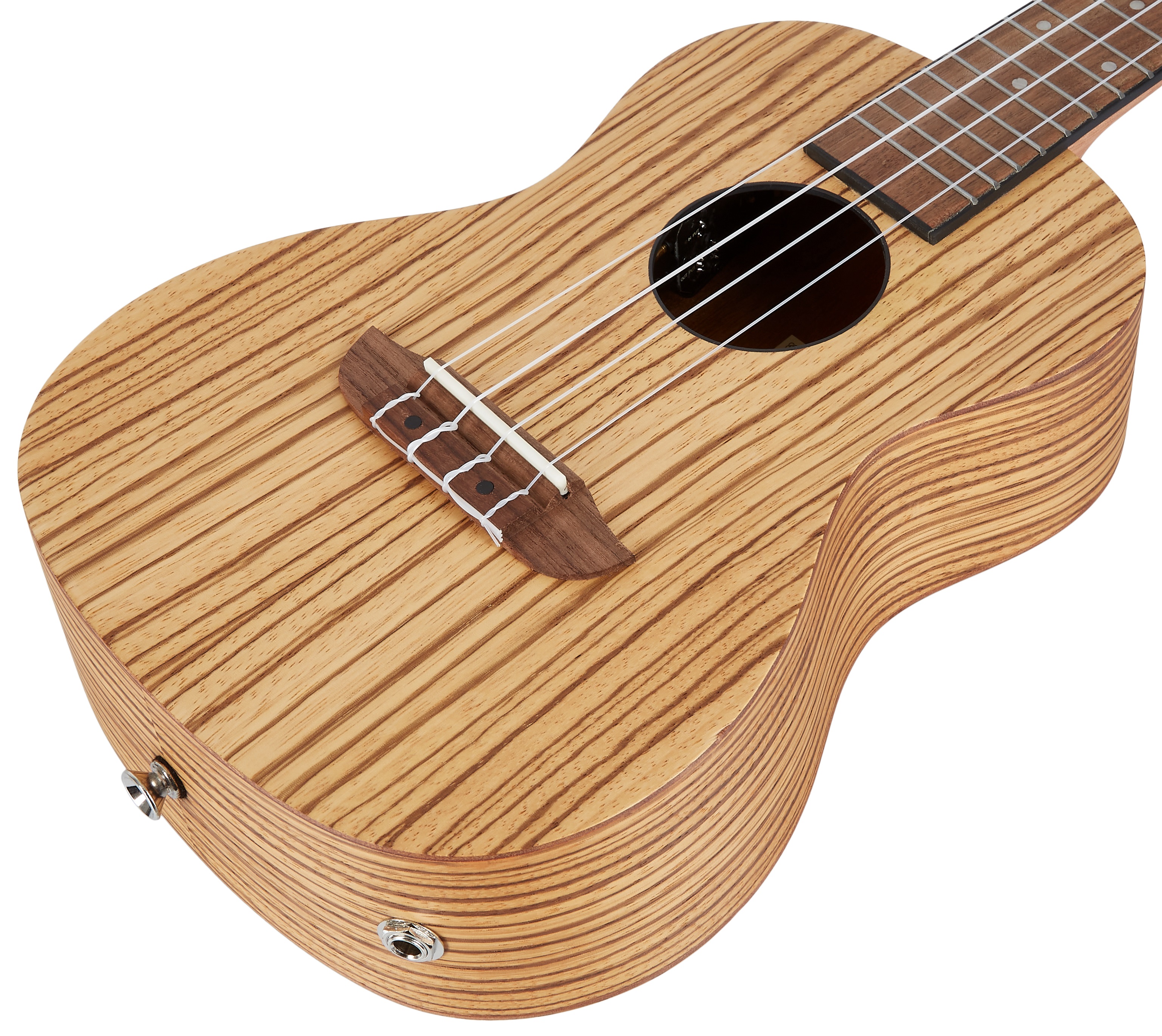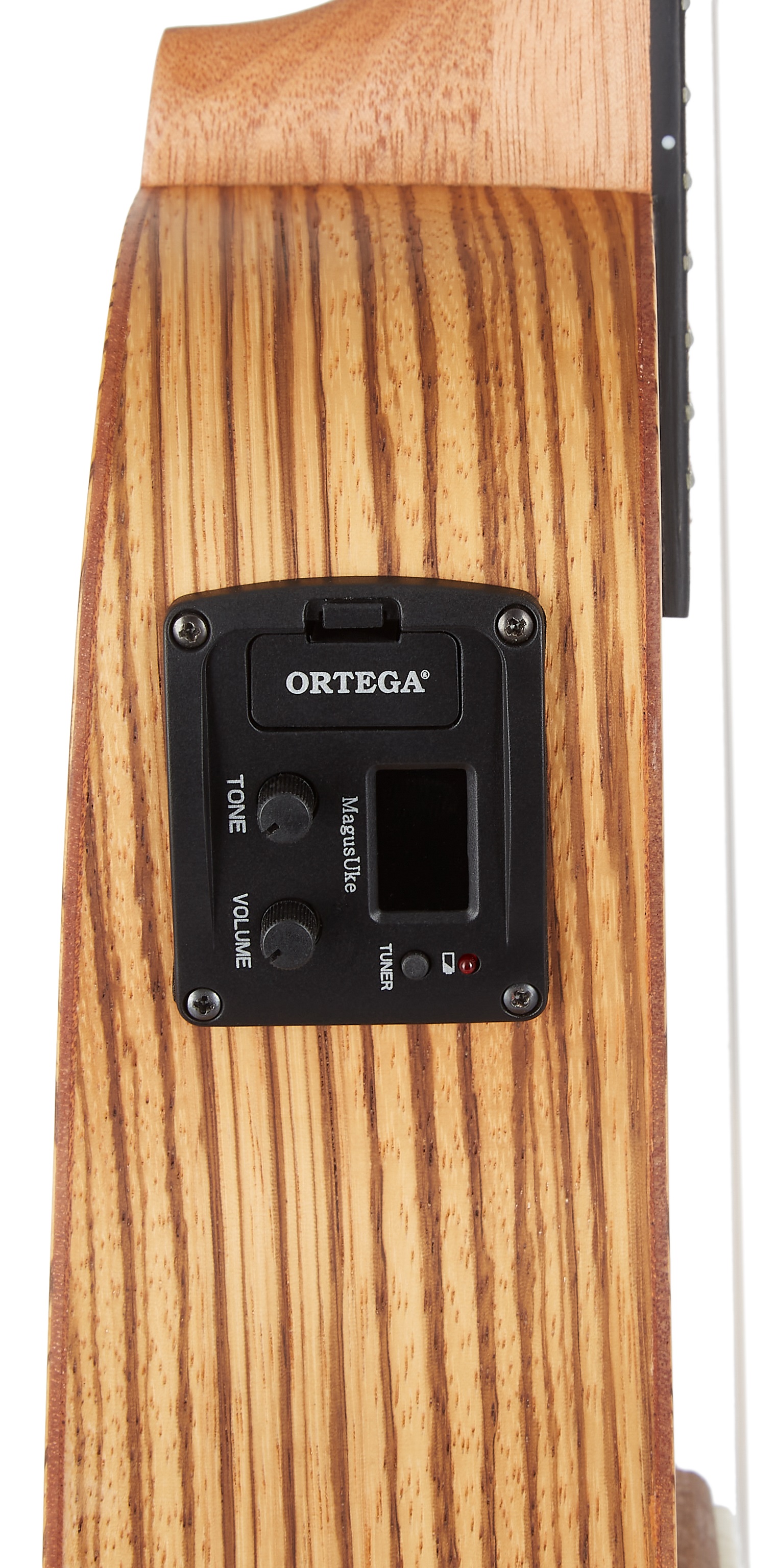 Elektroakustické ukulele Séria Ortega Friends ponúka kvalitne spracované a cenovo dostupné sopránové a koncertné ukulele, ktoré si môžete zakúpiť s praktickou luxusnou taškou. Ak s ukulele práve začínate, nástroje z radu Friends by nemali uniknúť vašej pozornosti. Telo tohto koncertného ukulele je vyrobené zo zebrového dreva. K mahagónovému krku prilieha orechový hmatník osadený osemnástimi pražcami a bielymi polohovými bodkami. Struny sú uchytené v orechovom hmatníku a uzavretých ladiacich mechanikách gita