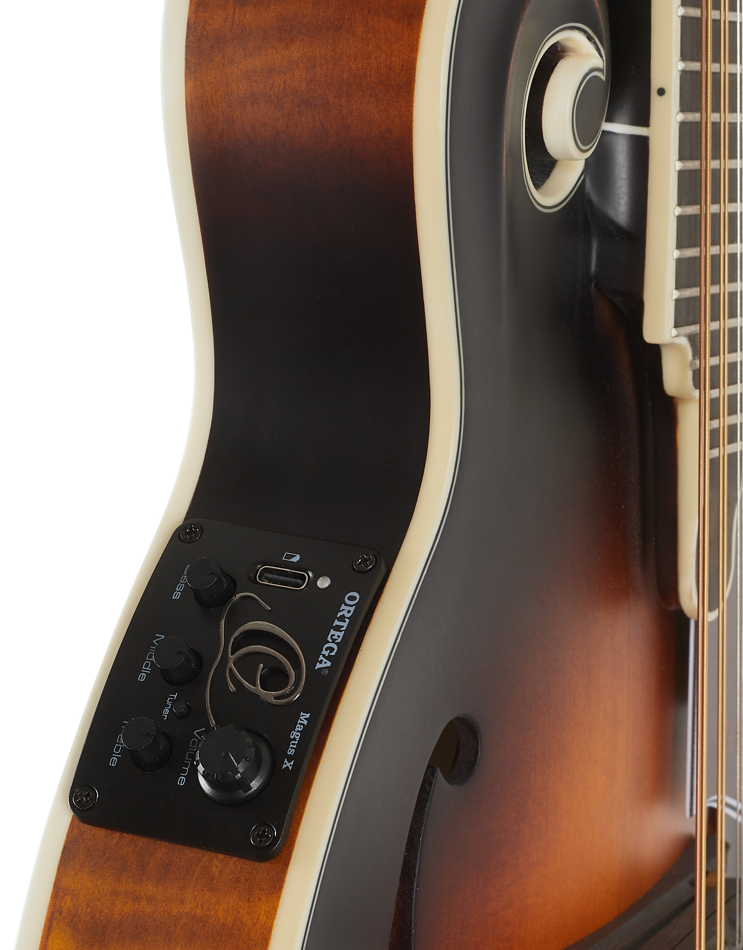 Elektroakustická mandolína Značka Ortega ponúka širokú škálu akustických a elektroakustických mandolín tradičných tvarov (typy A a F), z ktorých si môžu vybrať začiatočníci aj profesionáli. Ich spoločným menovateľom je kvalitný zvuk, prvotriedne materiály a dôkladné spracovanie. Čo viac si môžete priať… Telo tejto mandolíny F je vyrobené z masívnej smrekovej prednej dosky a masívnej figurovanej javorovej zadnej dosky a bokov, s krásnou kresbou a povrchovou úpravou čírym olejovým lakom. Ebenový hmatník osa