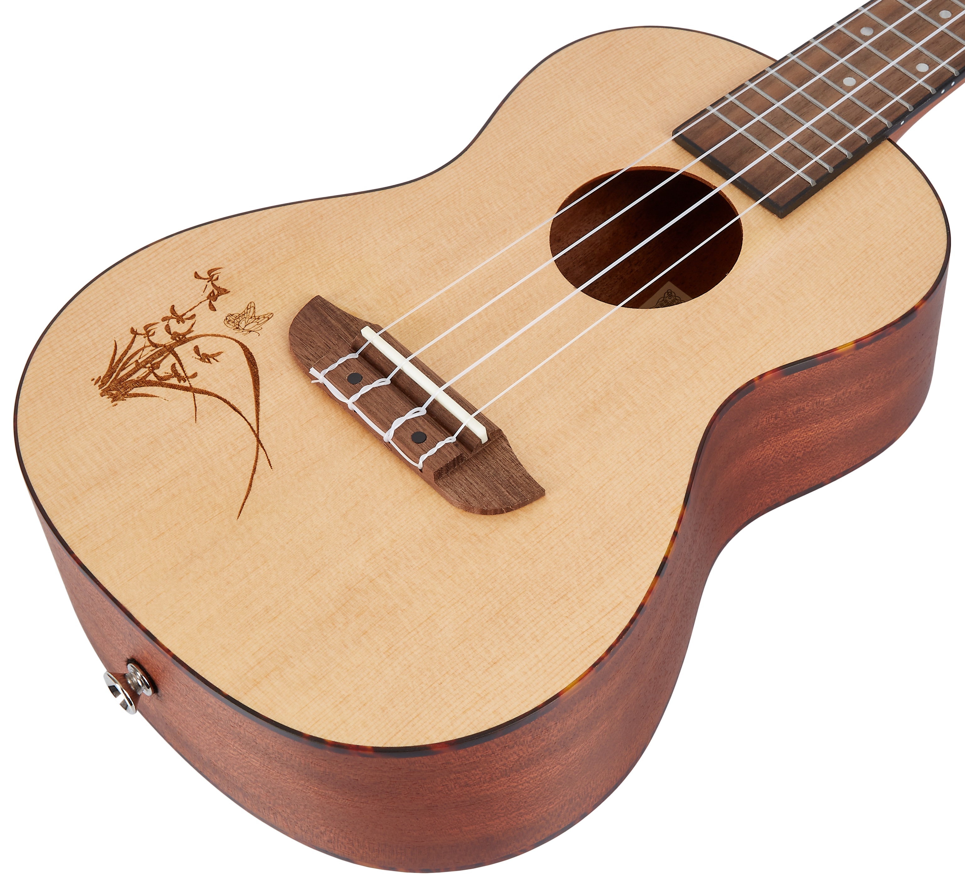 Ľavoručné akustické ukulele Ukulele Ortega zo série Bonfire sú ideálnou voľbou pre začiatočníkov na tento obľúbený nástroj. Ich spoločným menovateľom je kvalitné spracovanie a použitie časom overených materiálov. Vrstvené telo ľavorukého koncertného ukulele RU5L je vyrobené z laminovaného smrekového dreva a zadná doska a luby sú vyrobené z laminovaného sapele. Rezonančná doska je zdobená laserovým gravírovaním a telo je obklopené ABS väzbou. K mahagónovému krku je prilepený orechový hmatník s osemnástimi pr