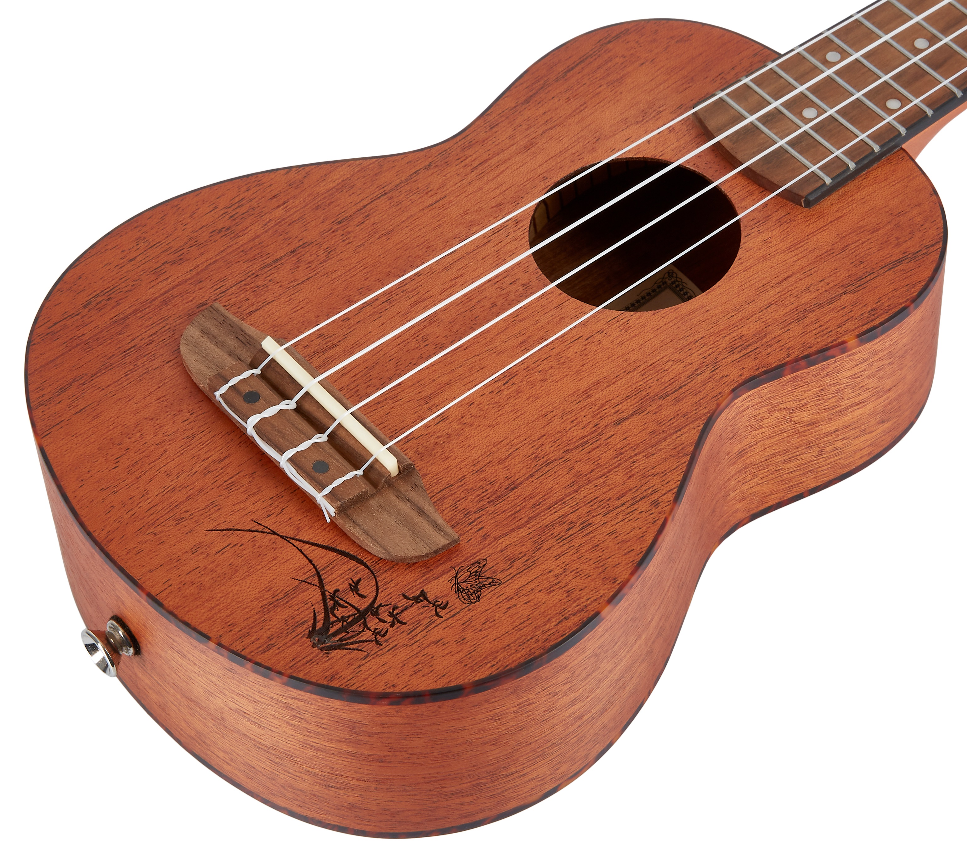 Akustické ukulele Ukulele Ortega zo série Bonfire sú ideálnou voľbou pre začiatočníkov na tento obľúbený nástroj. Ich spoločným menovateľom je kvalitné spracovanie a použitie časom overených materiálov (drevín). Telo sopránového ukulele RU5MM-SO je vyrobené z preglejky sapele. Predná doska je zdobená laserovým gravírovaním, telo obopína pás z materiálu ABS. Mahagónový krk je osadený orechovým hmatníkom s pätnástimi pražcami a polohovacie bodky uľahčujú orientáciu. Struny sú osadené v orechovom hmatníku a uz