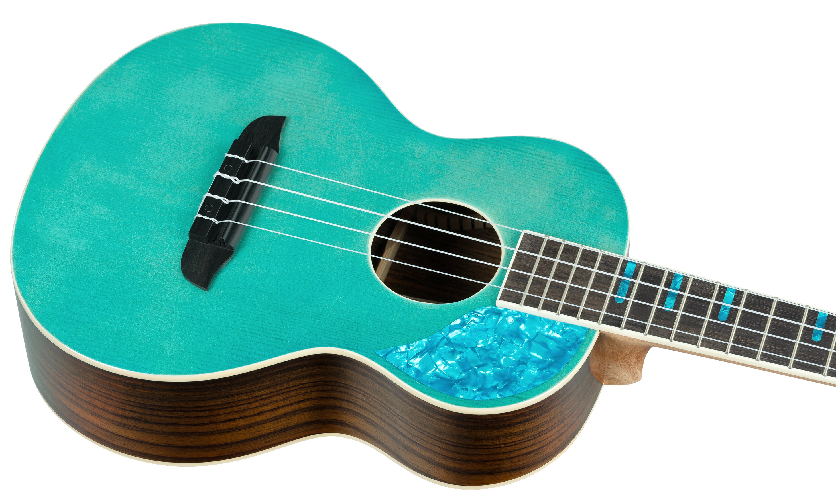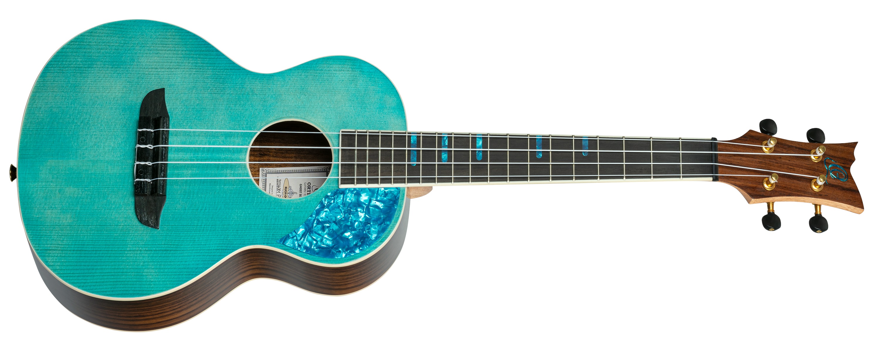 Akustické ukulele Ortega RUGH-OCT je tenorové akustické ukulele zo série Ghost. Predná strana nástroja je vyrobená z masívneho smrekového dreva, ktoré je doplnené vizuálne efektným palisandrovým prekrytím na zadnej strane a luboch. Palisander je zvýraznený lesklým lakom, zatiaľ čo rezonančnú dosku zdobí povrchová úprava Gloss Ocean a pôsobivý pickguard s „modrou perleťou“. K mahagónovému krku je prilepený palisandrový hmatník s osemnástimi pražcami. Polohové značky v dizajne „modrej perlete“ uľahčujú orient