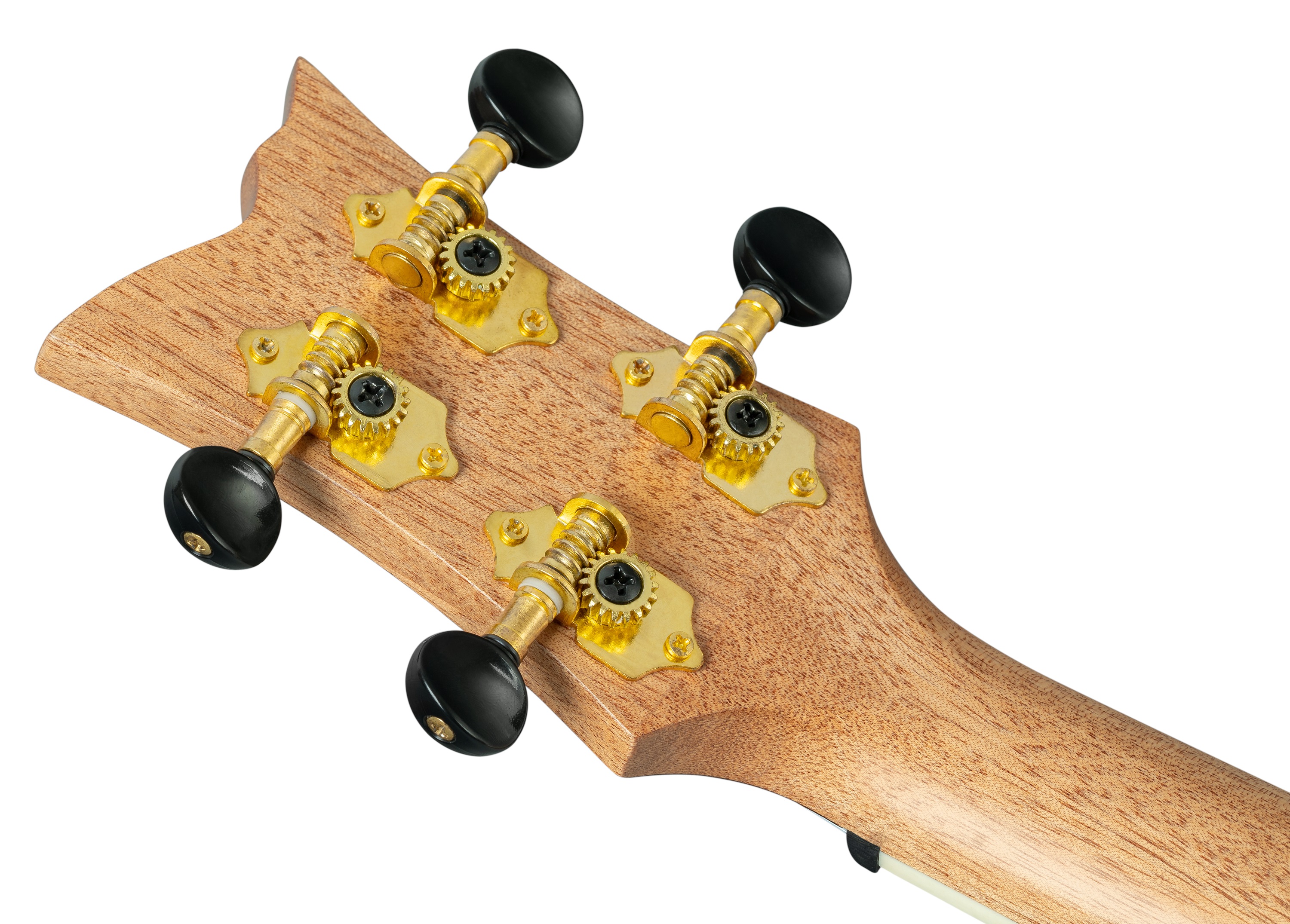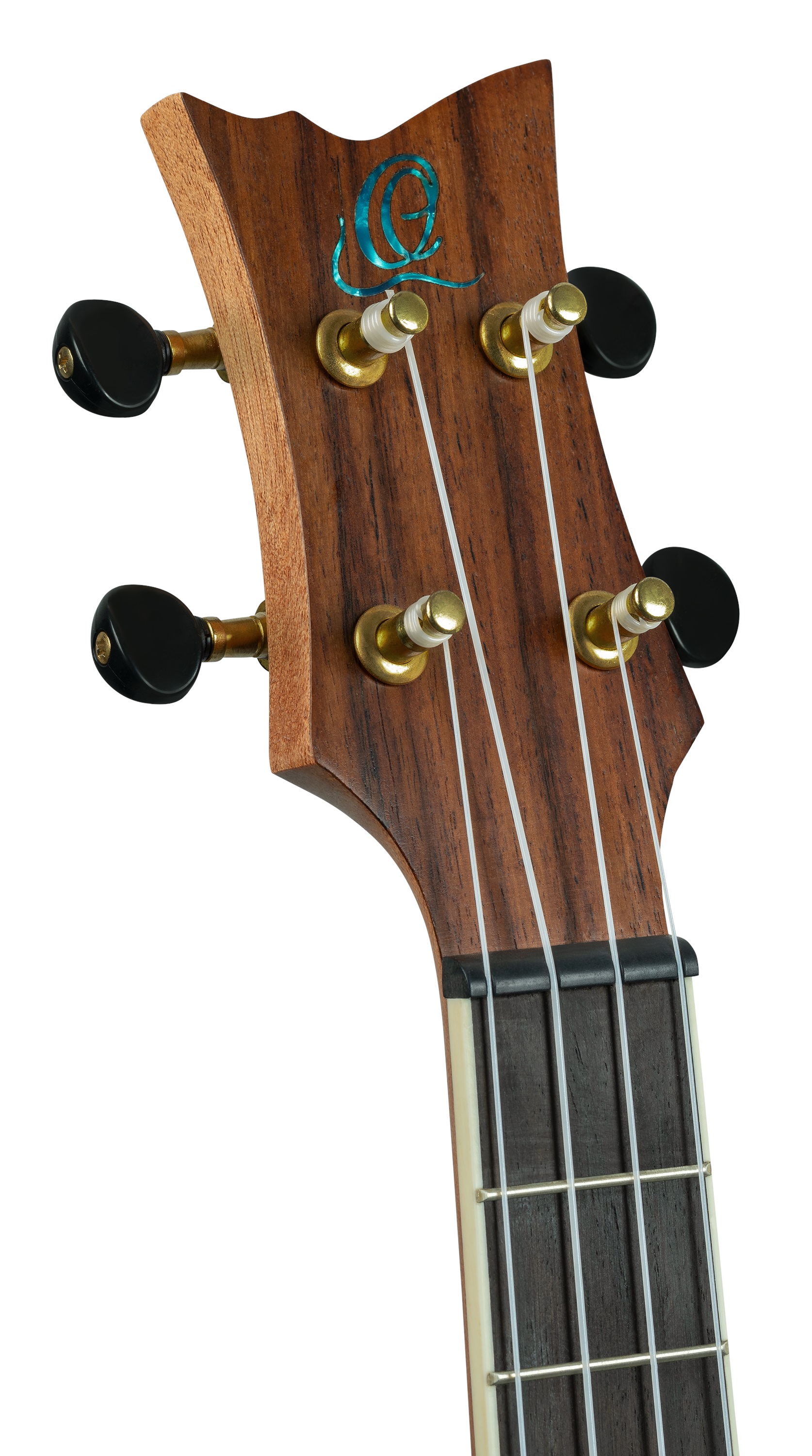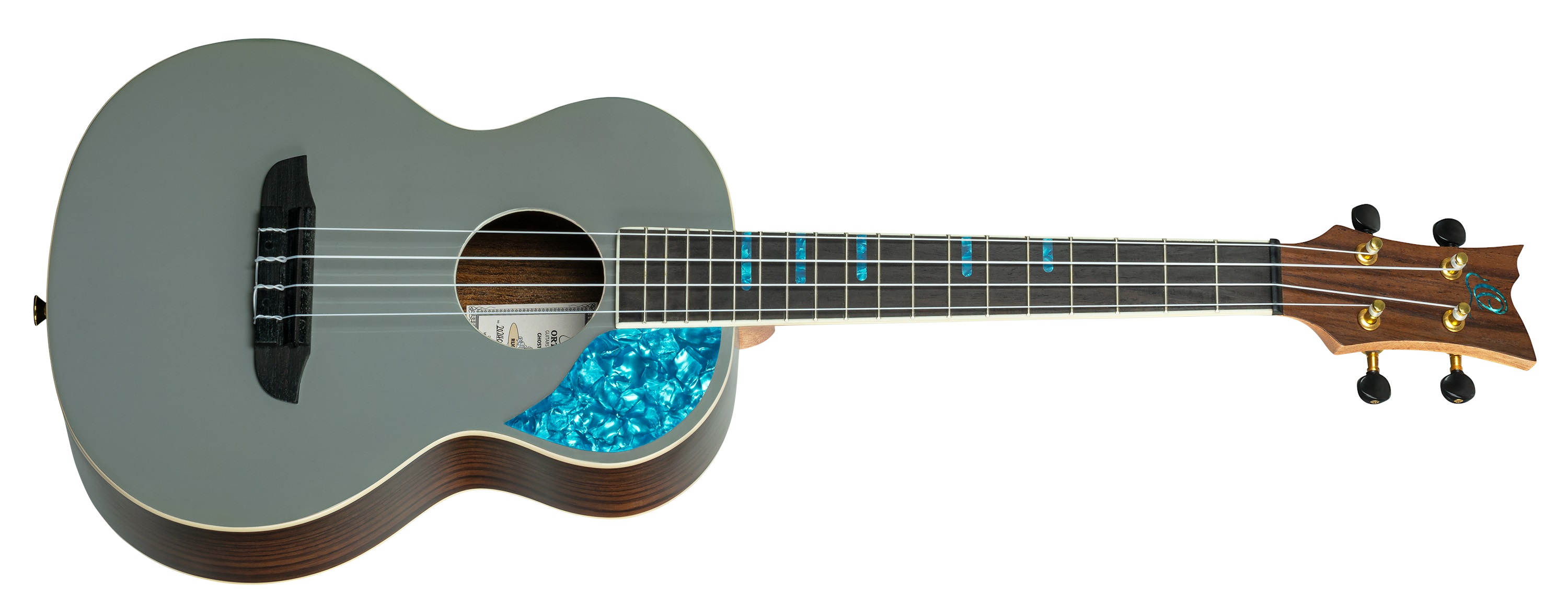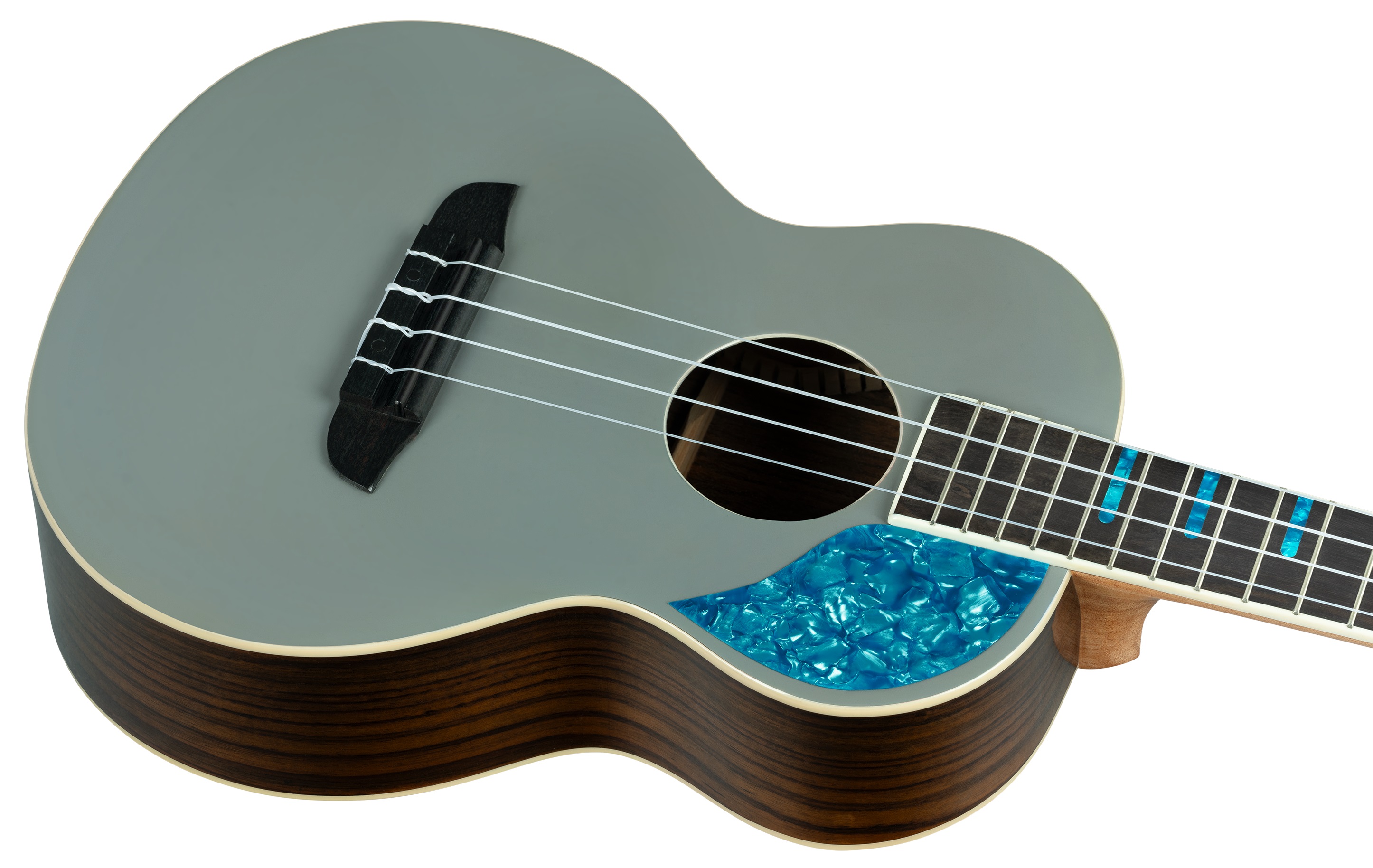 Akustické ukulele Ortega RUGH-PLT je tenorové akustické ukulele zo série Ghost. Predná strana nástroja je vyrobená z masívneho smrekového dreva, ktoré je doplnené vizuálne efektným palisandrovým prekrytím na zadnej strane a luboch. Palisander je zvýraznený lesklým lakom, zatiaľ čo rezonančnú dosku zdobí povrchová úprava Gloss Platinum a pôsobivý pickguard s „modrou perleťou“. K mahagónovému krku je prilepený palisandrový hmatník s osemnástimi pražcami. Polohové značky v dizajne „modrej perlete“ uľahčujú ori