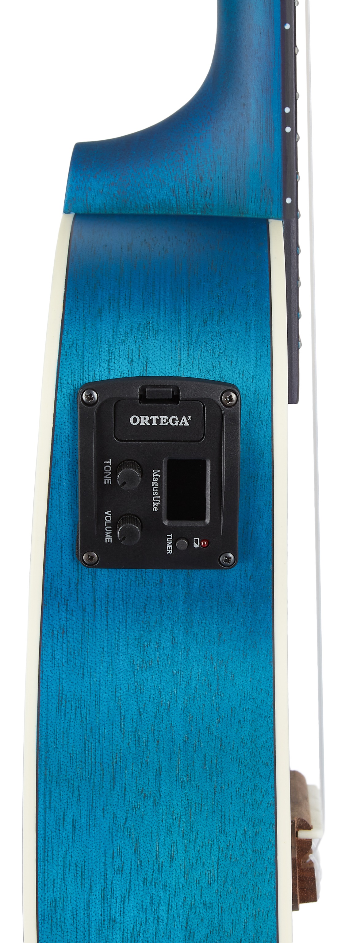 Elektroakustické ukulele Séria Earth od Ortegy prináša kvalitne spracované a cenovo dostupné ukulele vo farebnom prevedení vhodnom pre začiatočníkov aj pokročilých hráčov. Ide o nástroje koncertnej veľkosti, čo znamená, že sú o niečo väčšie ako soprány, ale stále si zachovávajú príjemné rozmery a typický zvuk, pre ktorý sú také obľúbené. Predná strana tohto ukulele je vyrobená z preglejky okoumé, zadná strana a boky zo sapele. Telo zdobí farebná úprava Ocean Blue a biela obvodová lišta z ABS. K mahagónovému