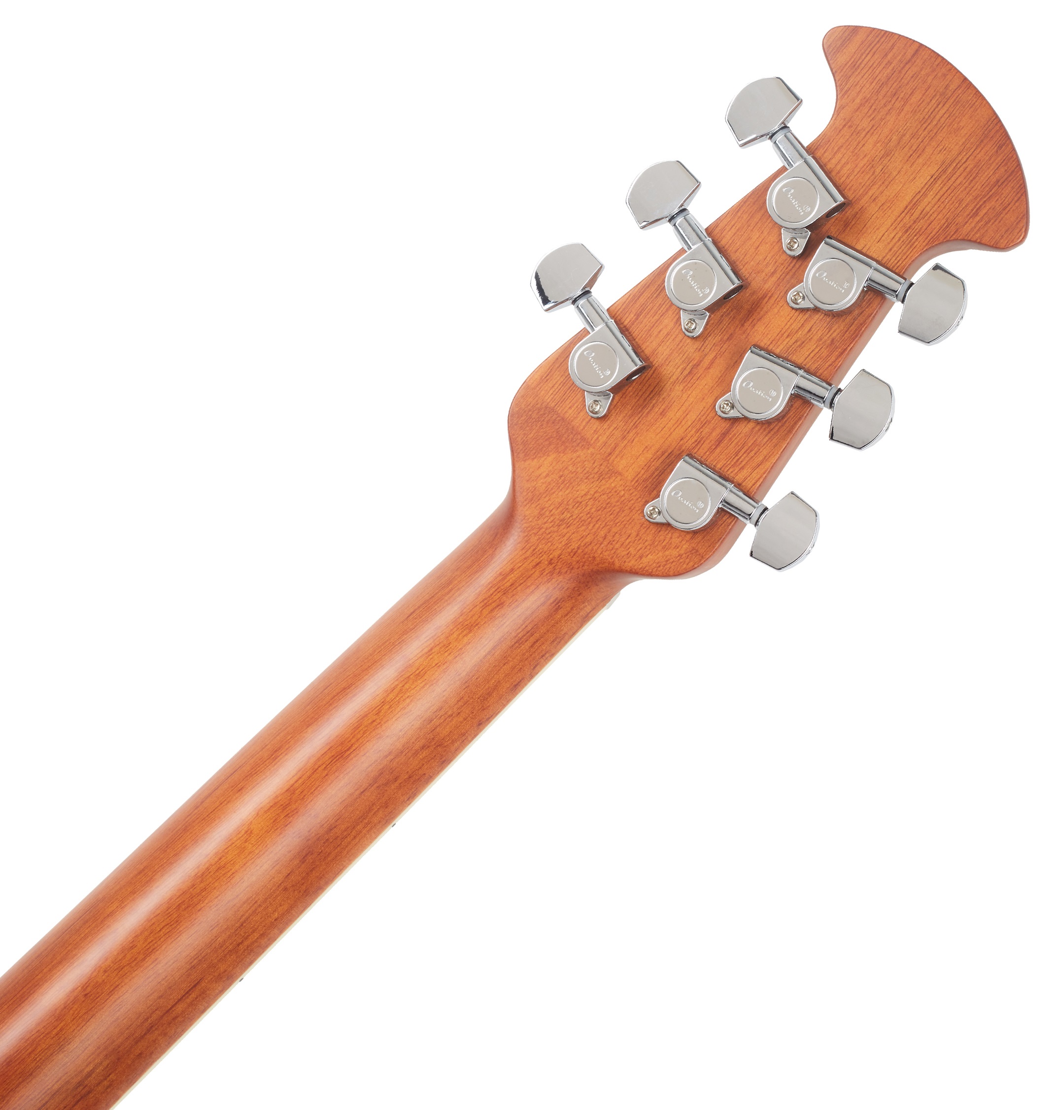 Elektroakustická gitara Akustické gitary Ovation spoznáte vždy na prvý pohľad. Majú typické oblúkovité telo vyrobené zo špeciálneho materiálu Lyrachord. Ten je nielen veľmi odolný, ale poskytuje gitare aj dostatočnú hlasitosť a akustickú silu. Okrem toho je ergonomicky tvarovaná, takže vám gitara dobre padne do ruky. Predná doska modelu Celebrity Elite Plus CE48P-RG zo série Celebrity Elite Exotic je vyrobená z laminovaného vločkového javora s parádnym vzorom, ktorý zdobí povrchová úprava Carribean Blue/Nat